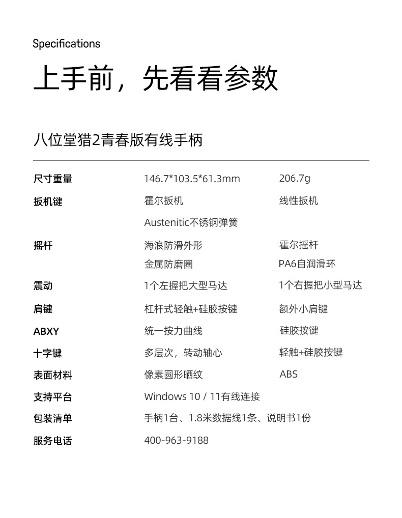 8BitDo 오리온 청춘판 2세대 유선 컨트롤러 안드로이드 PC 컴퓨터 스팀 홀 조이스틱