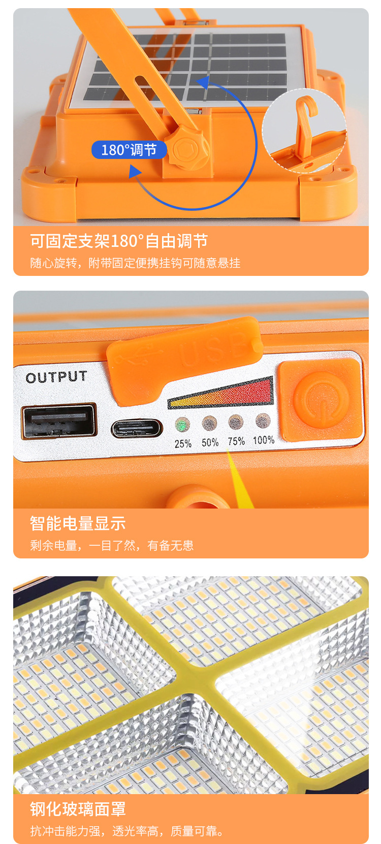 태양 캠핑 램프 충전식 홍수 빛 휴대용 고휘도 야외 모바일 비상 조명 태양 휴대용 램프