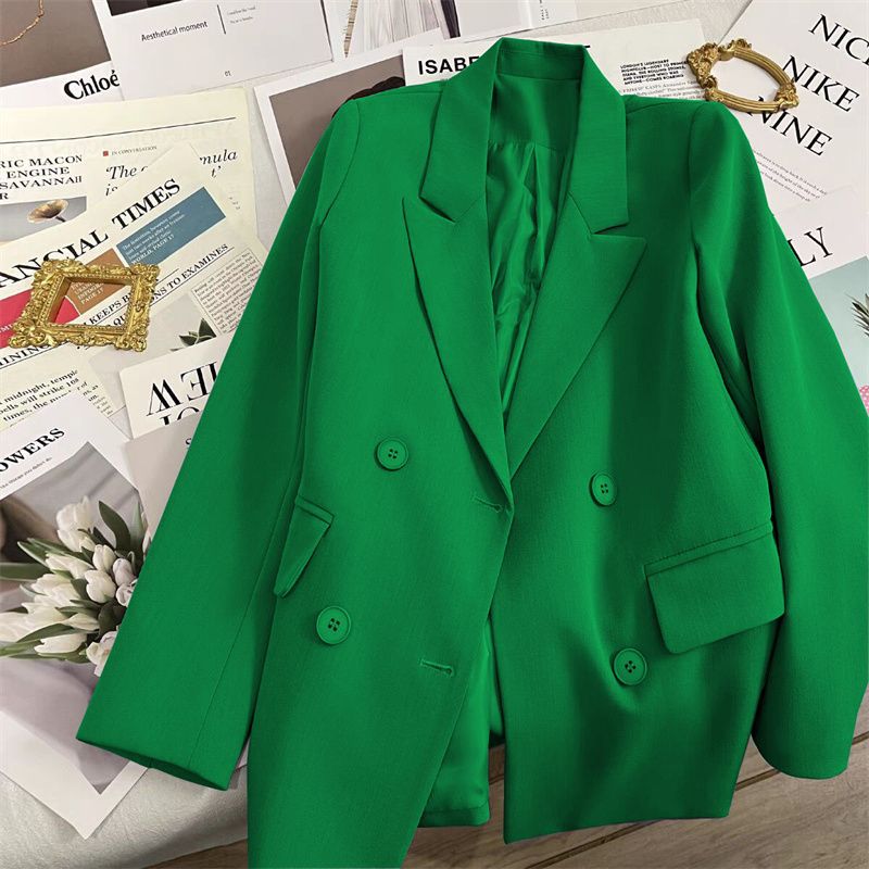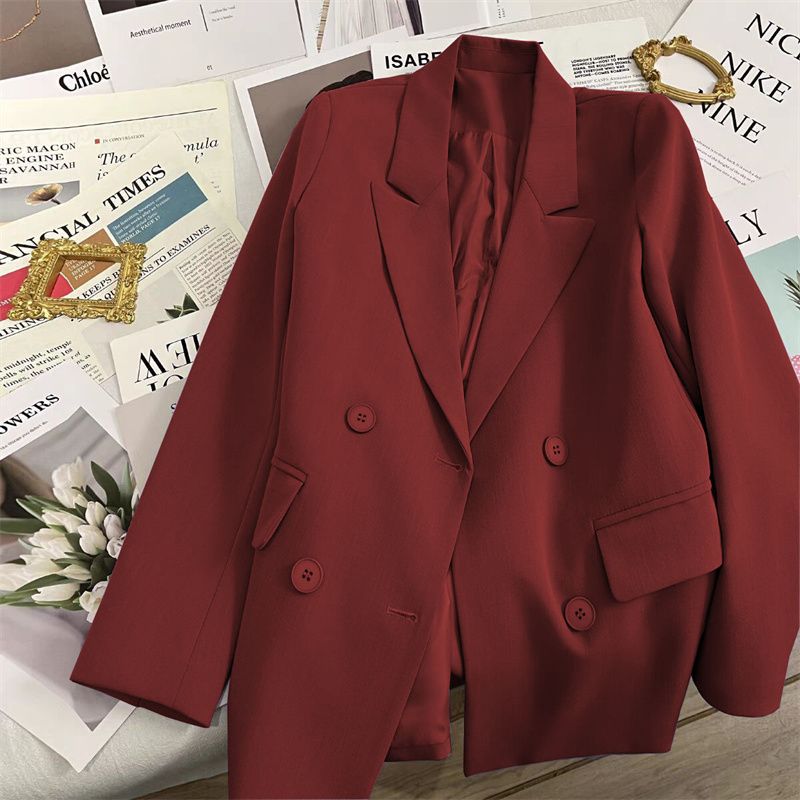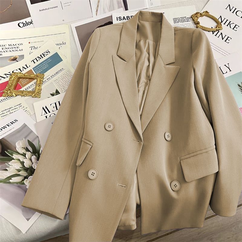 타로 퍼플 루즈핏 수트 재킷 2026 한국판 봄 가을 신상 디자인 캐주얼 패션 더블 브레스트 탑 수트 여성용스토어 가기