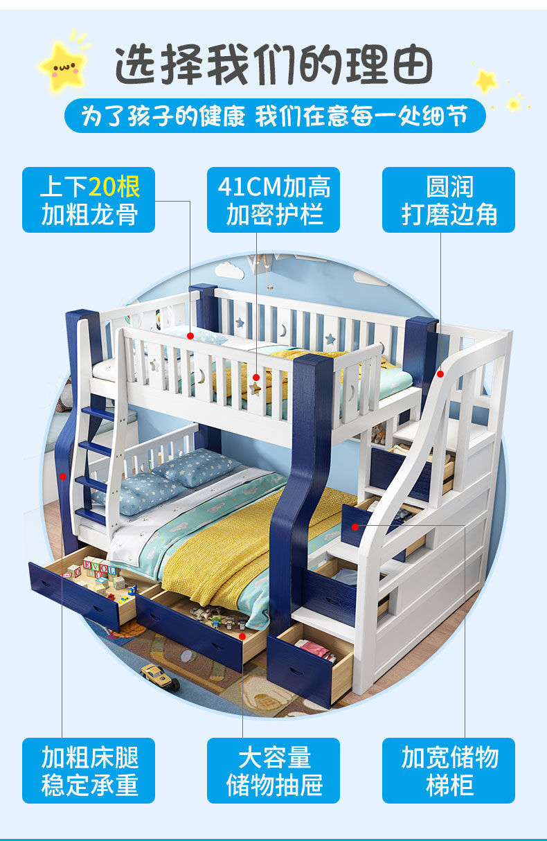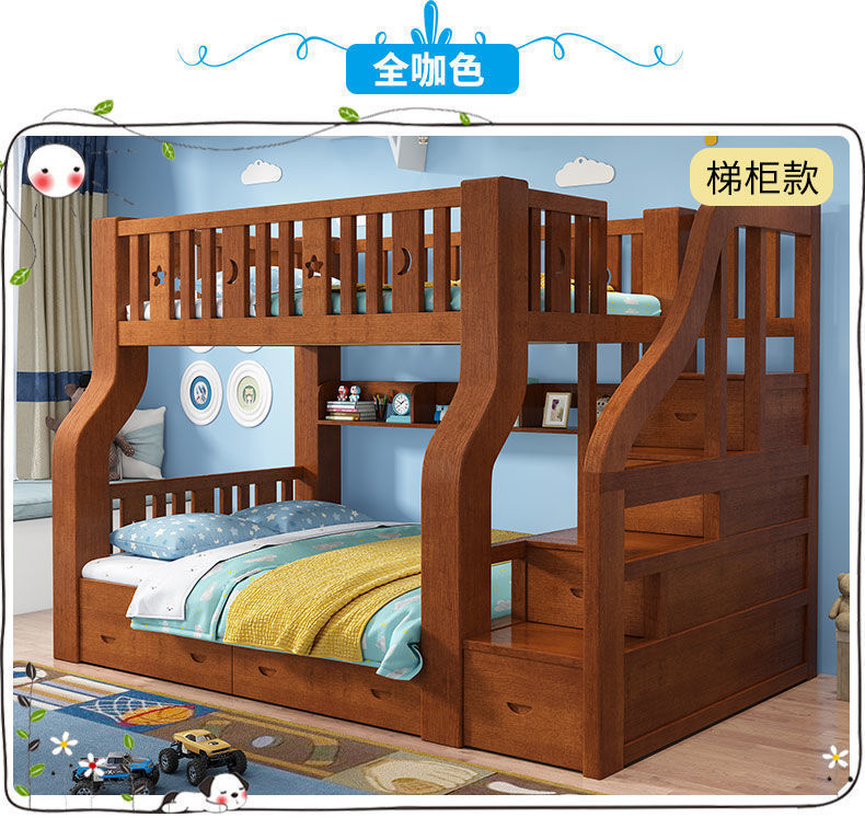 두껍고 두꺼운 모든 단단한 나무 벙크 침대 어머니 침대 높고 낮은 침대 성인 어린이 벙크 침대 침대 컬러 페인트스토어 가기