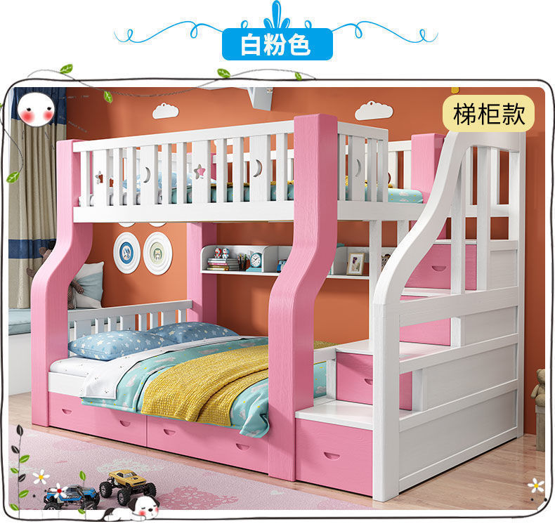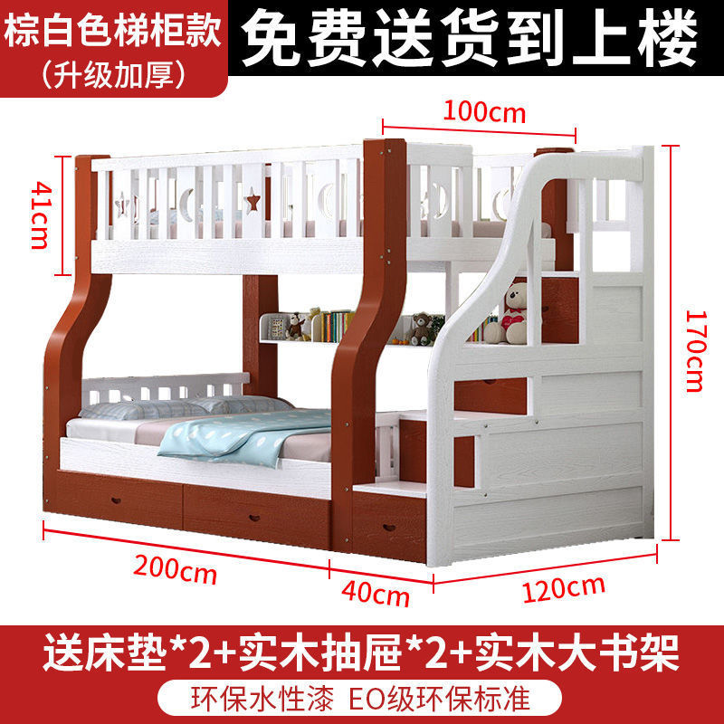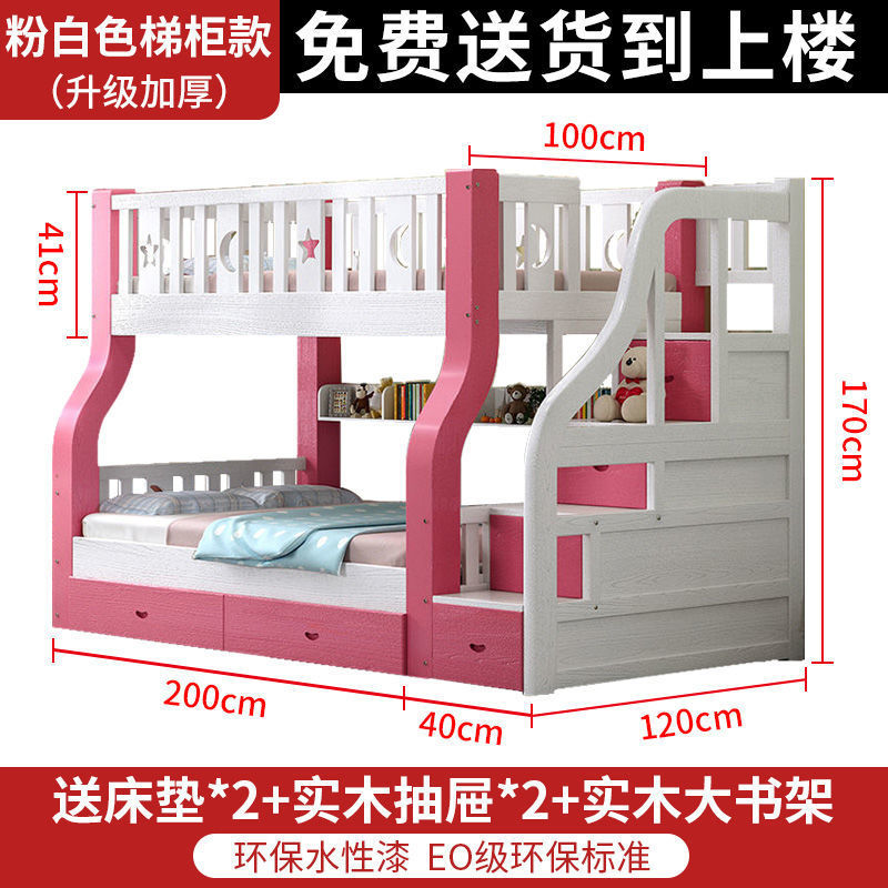 두껍고 두꺼운 모든 단단한 나무 벙크 침대 어머니 침대 높고 낮은 침대 성인 어린이 벙크 침대 침대 컬러 페인트