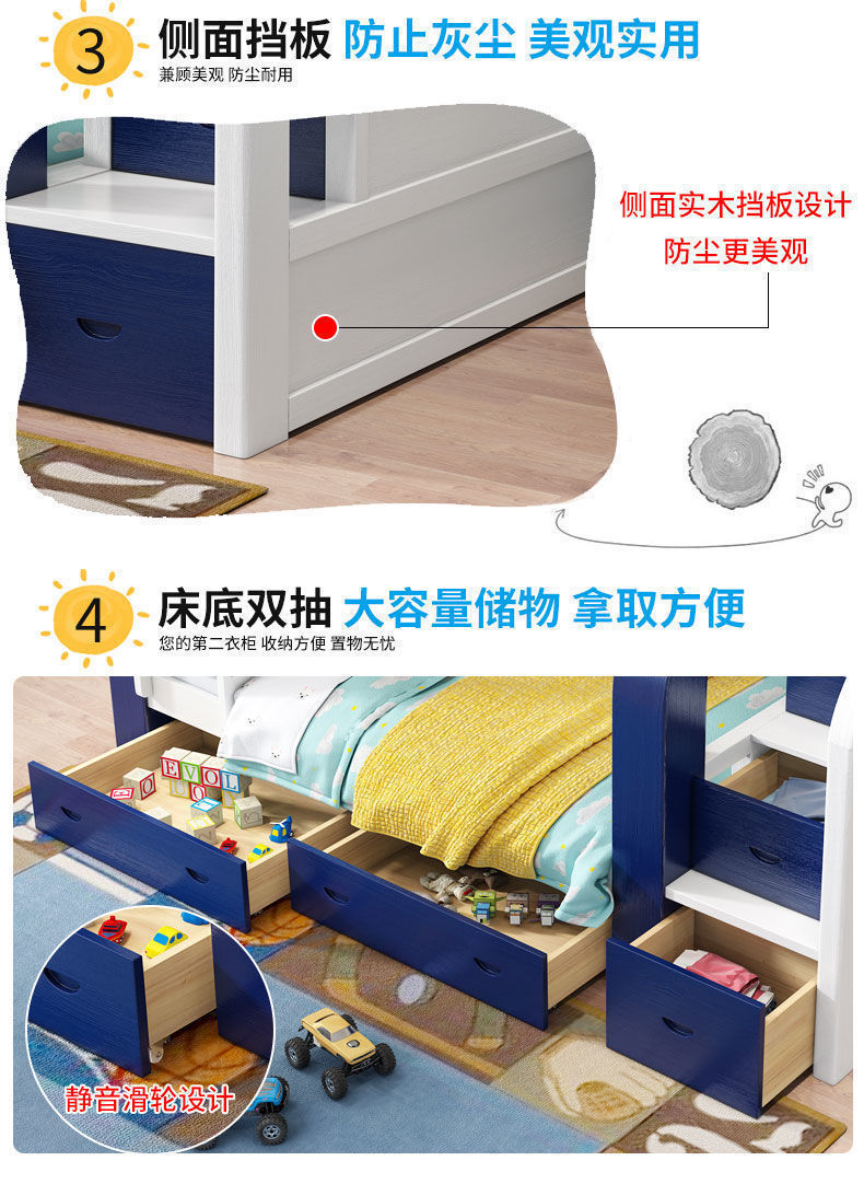 • 파란색과 흰색 사다리 캐비닛 + 책장 + 서랍 + 매트리스 + 설치