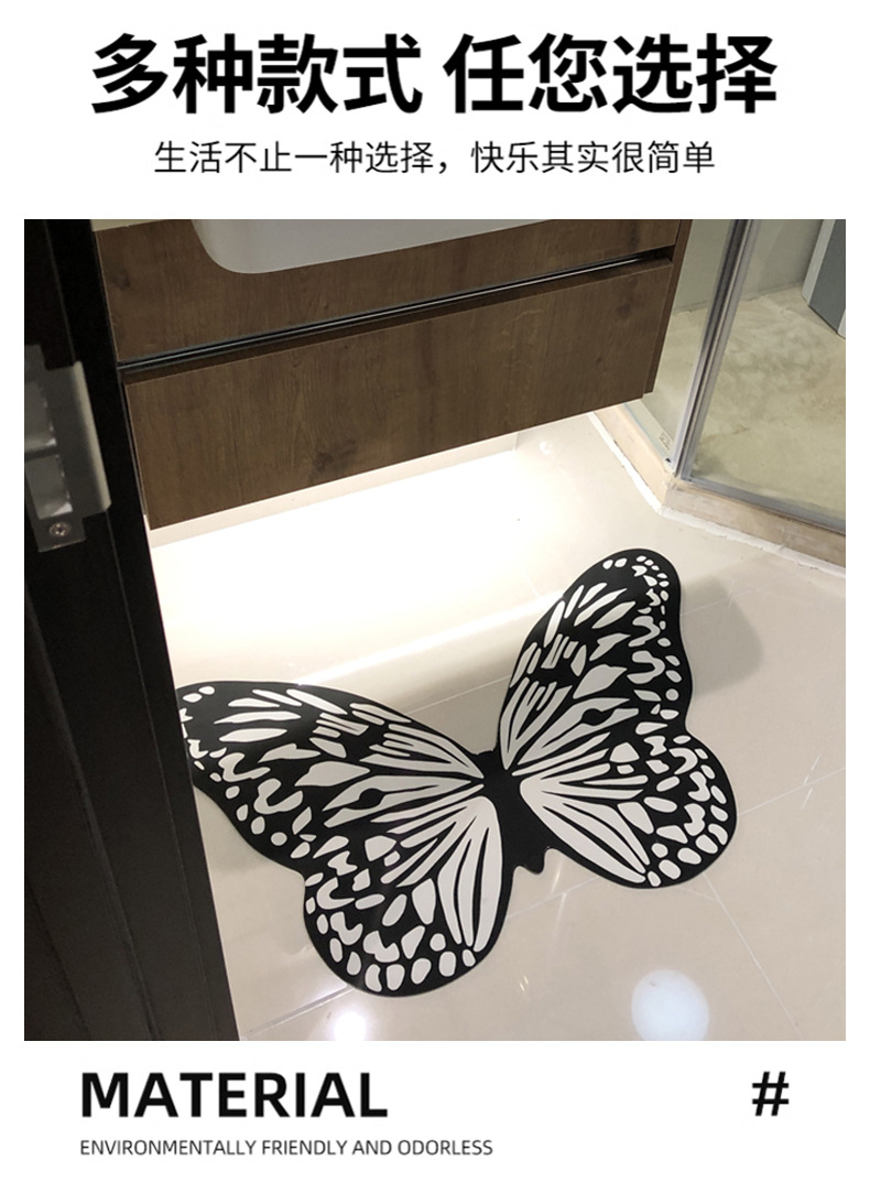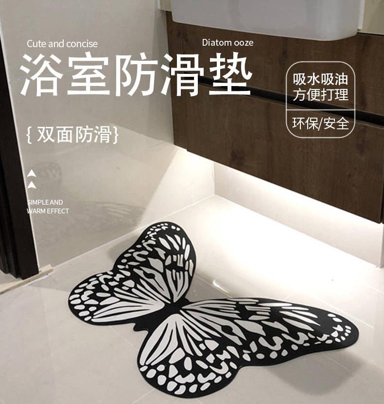흑백 나비 욕실 Diatom 진흙 바닥 매트 라이트 럭셔리 흡수성 미끄럼 방지 변기 발 매트 세척 테이블 빠른 건조 바닥 매트스토어 가기