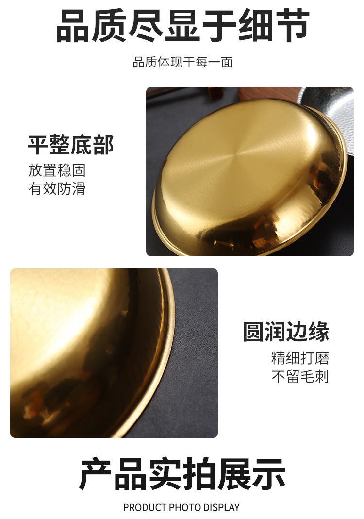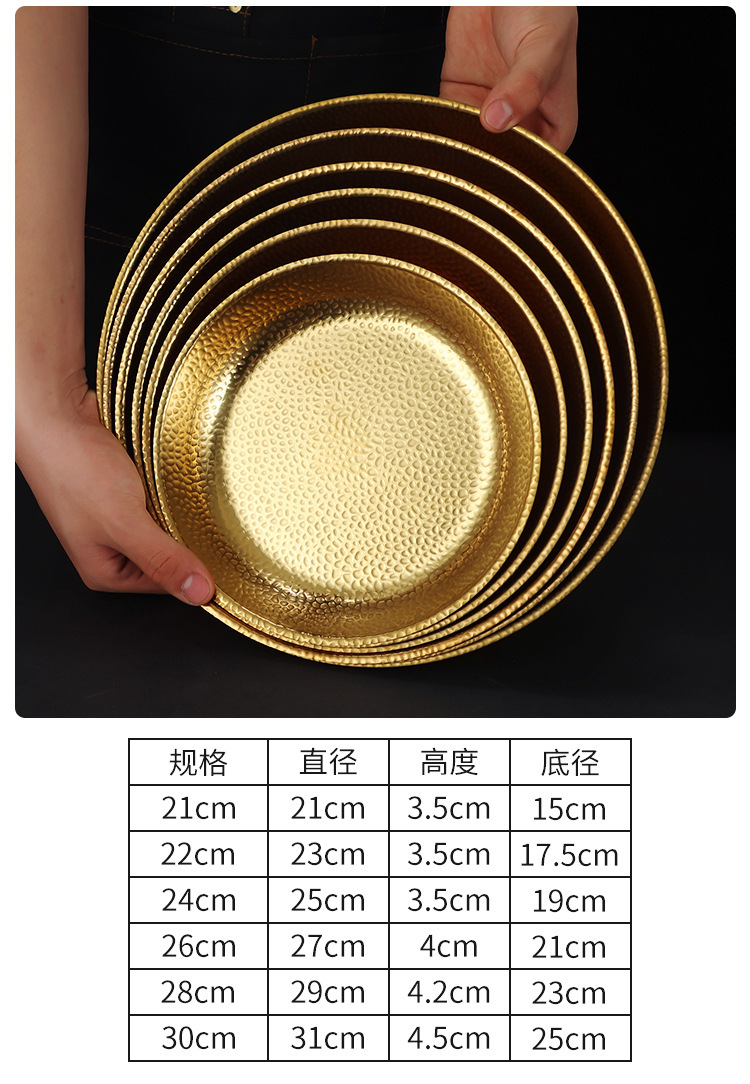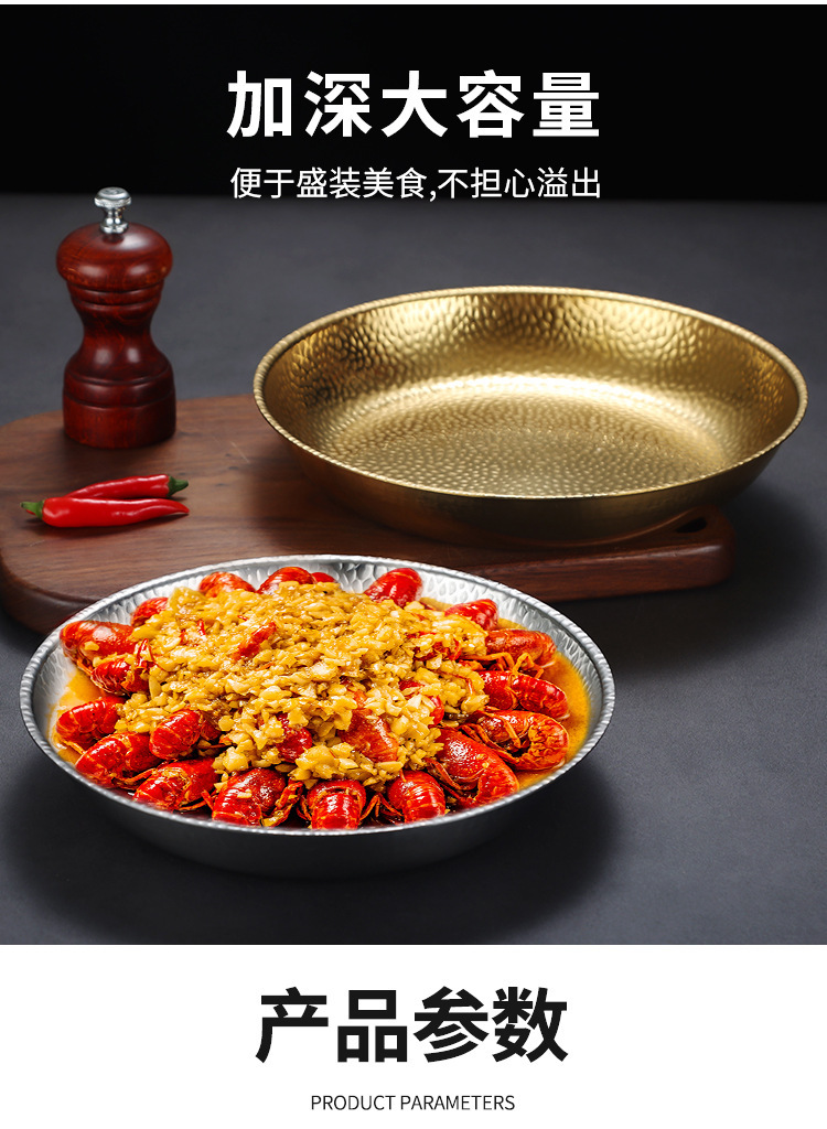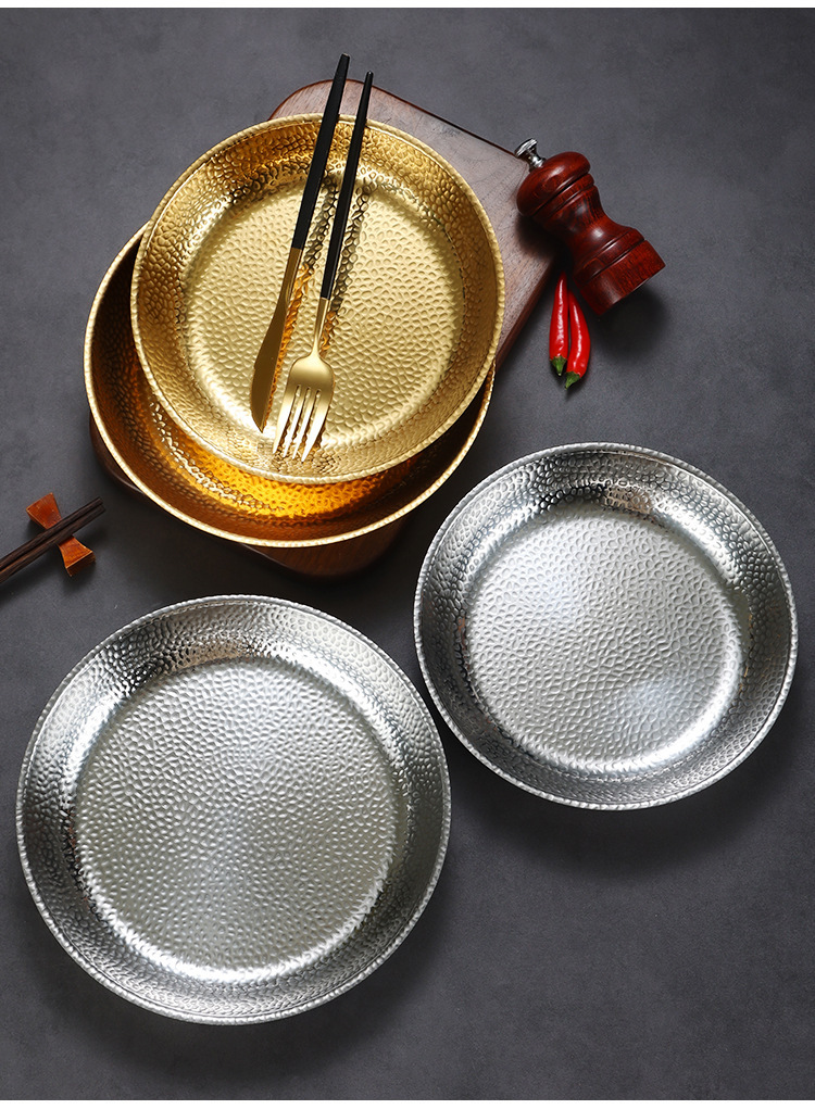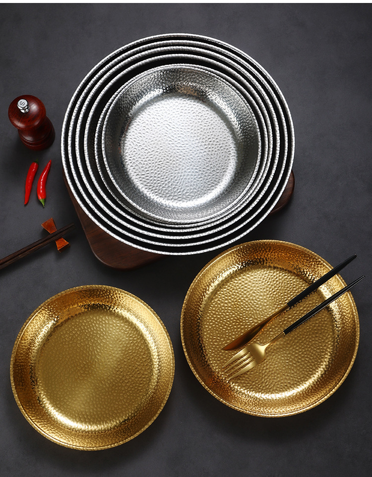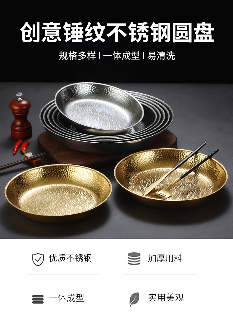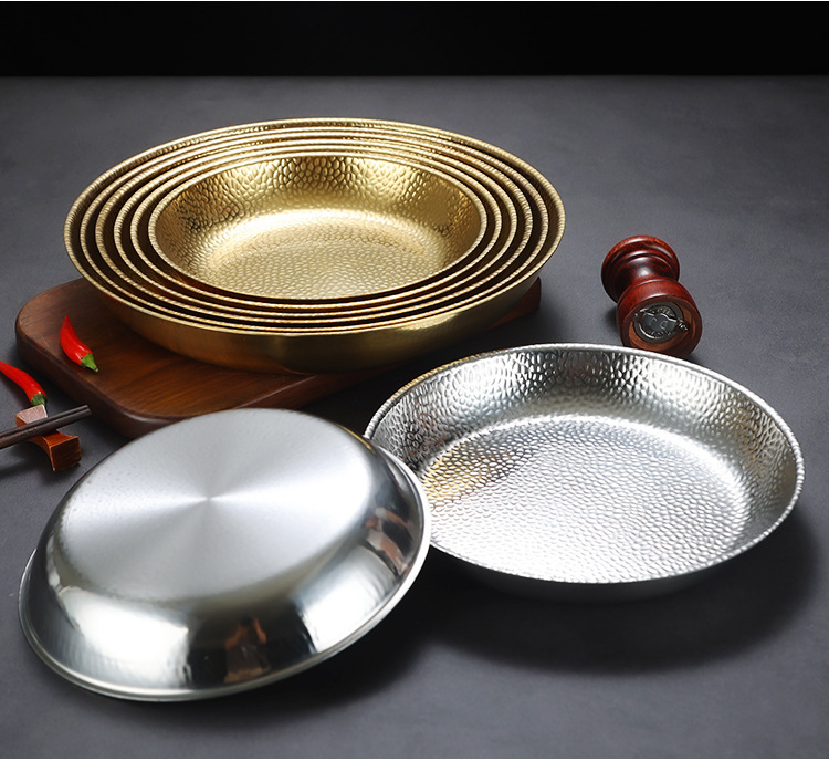 한국식 스테인레스 스틸 라운드 플레이트 바베큐 플레이트 웨스턴 스테이크 플레이트 파스타 플레이트 골든 플랫 랍스터 플레이트 과일 트레이