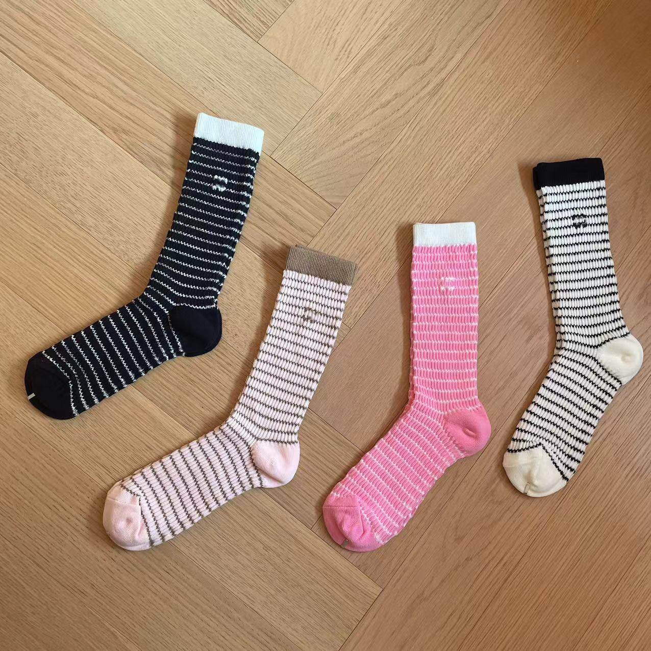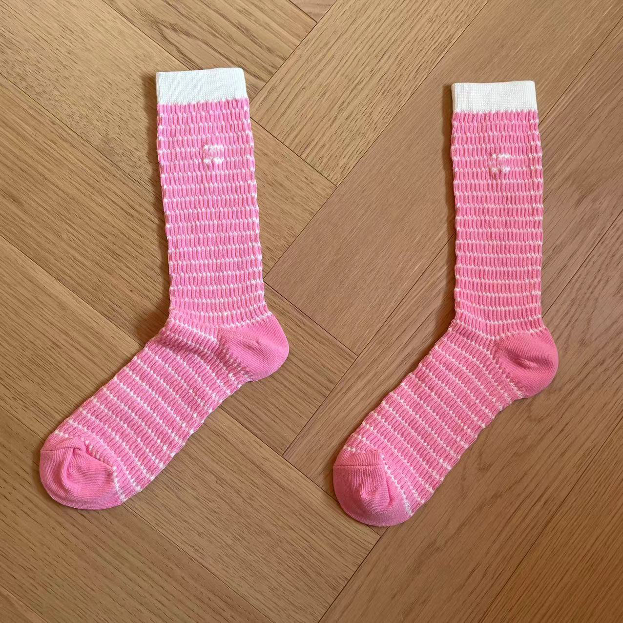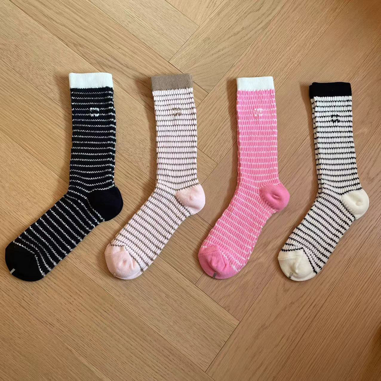 가을과 겨울 스타일 샤넬 스타일 더블 C 편지 양말 달콤한 가리 스타일 버블 레이스 중간 양말 인터넷 축하 더미 양말 여성 트렌디