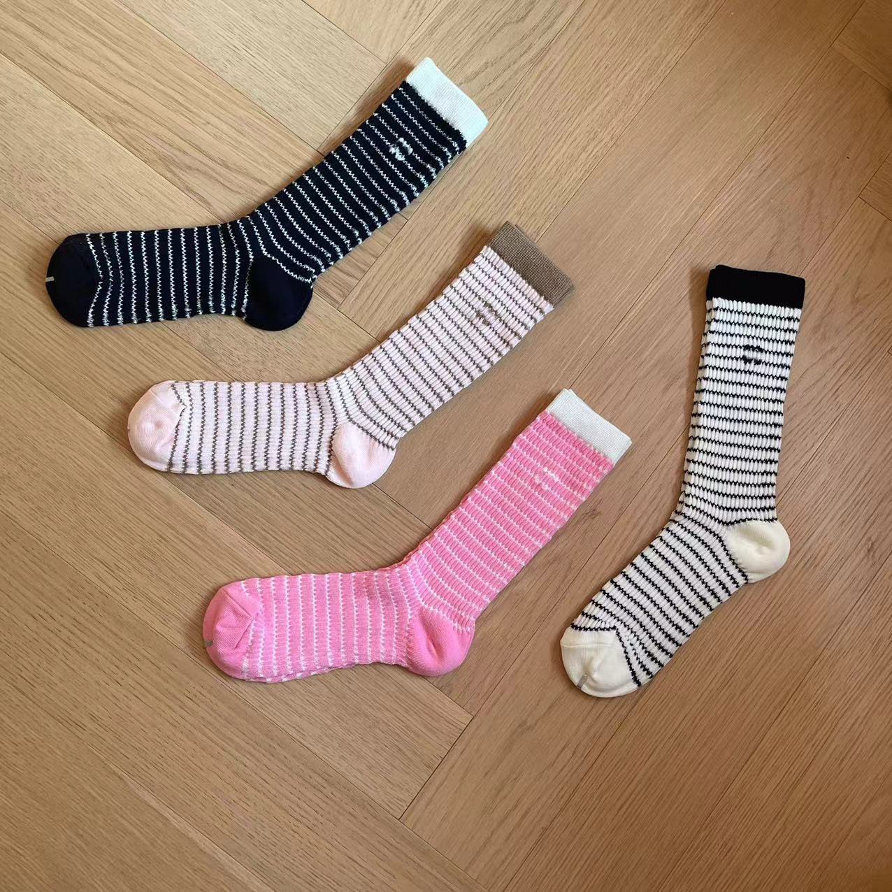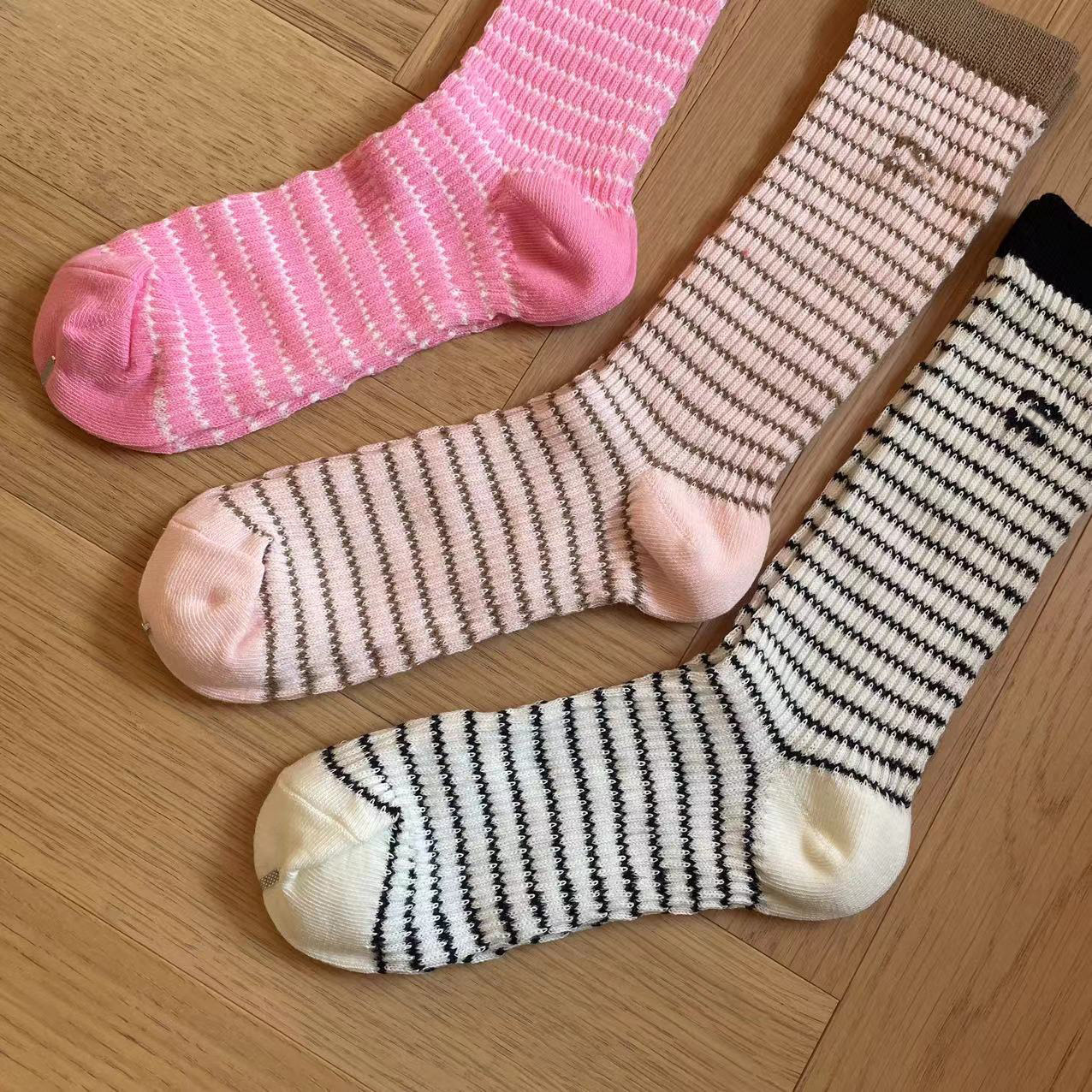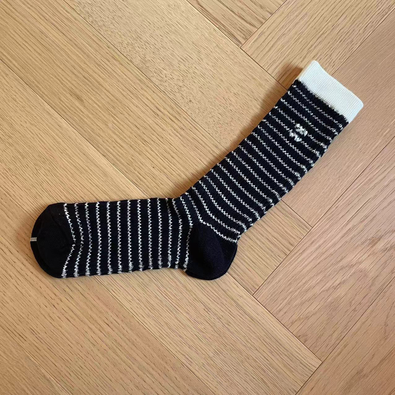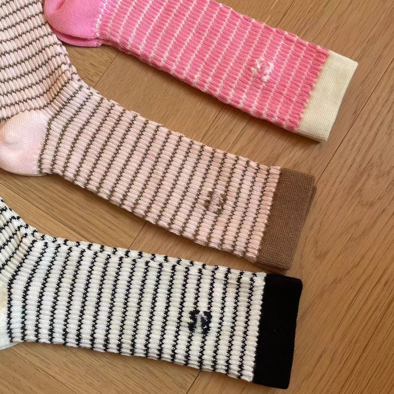 가을과 겨울 스타일 샤넬 스타일 더블 C 편지 양말 달콤한 가리 스타일 버블 레이스 중간 양말 인터넷 축하 더미 양말 여성 트렌디