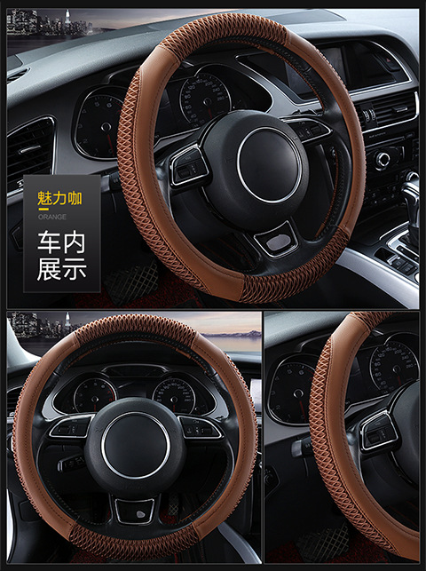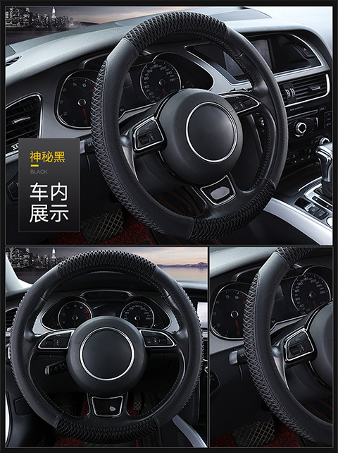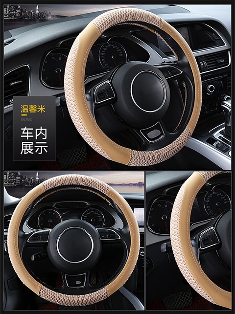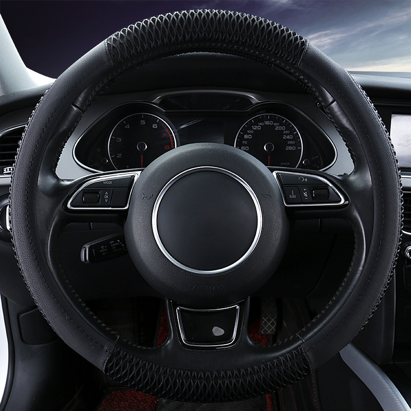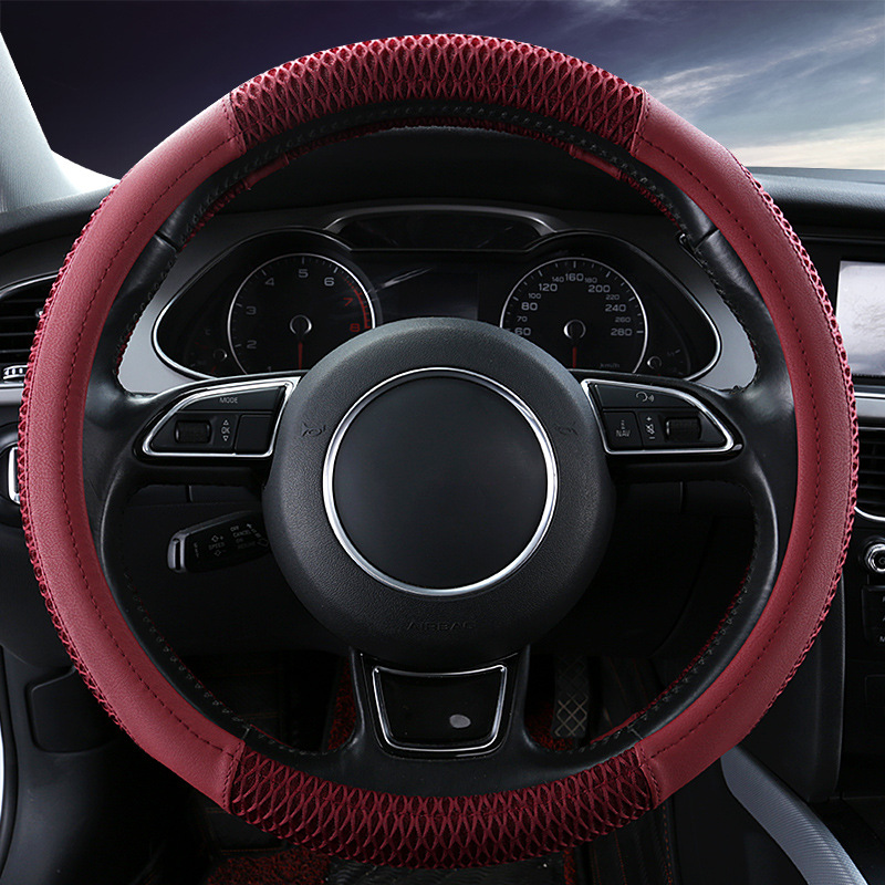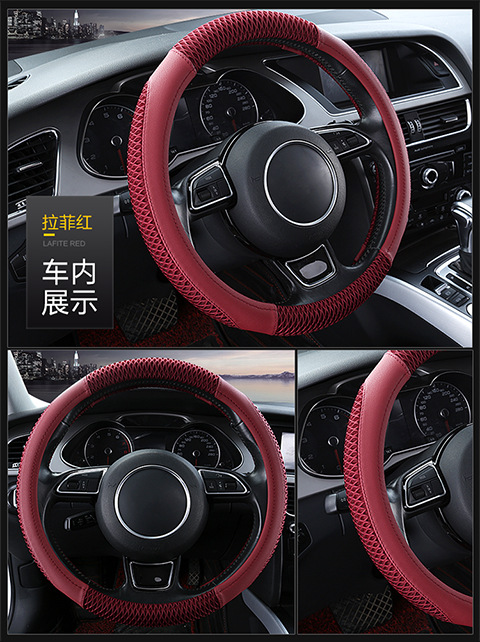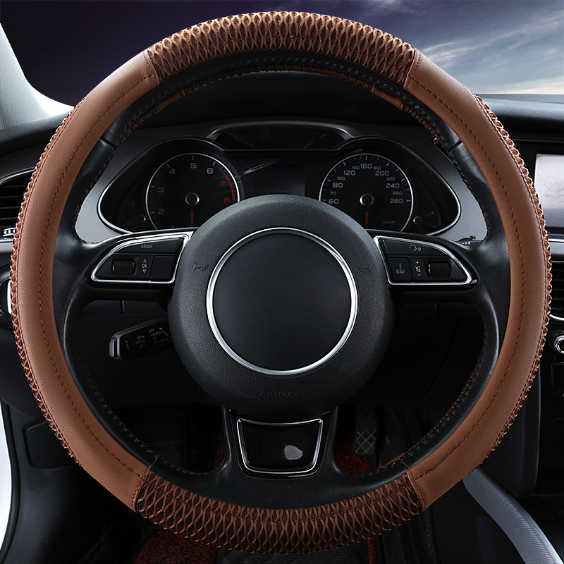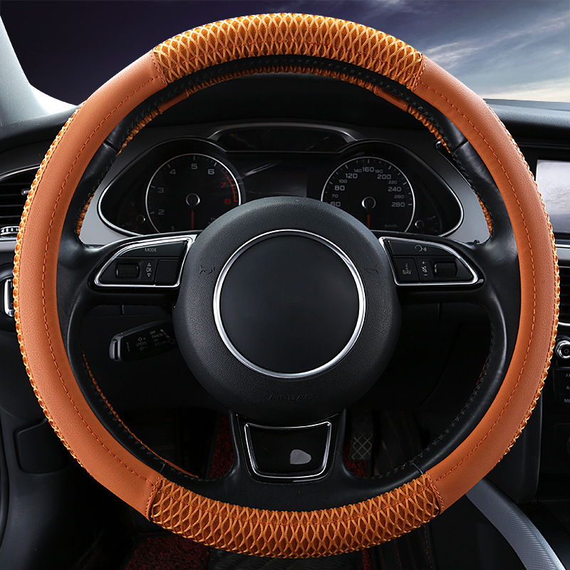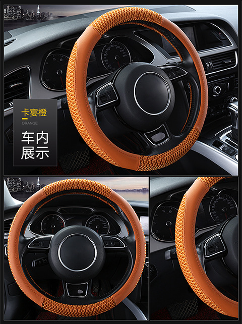 자동차 스티어링 휠 커버 가죽 남성용 통기성 아이스 실크 미끄럼 방지 땀 흡수성 여성용 스티어링 커버 D 형 핸들 커버스토어 가기