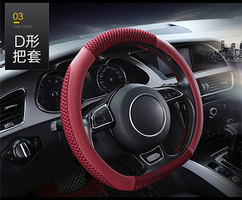 자동차 스티어링 휠 커버 가죽 남성용 통기성 아이스 실크 미끄럼 방지 땀 흡수성 여성용 스티어링 커버 D 형 핸들 커버