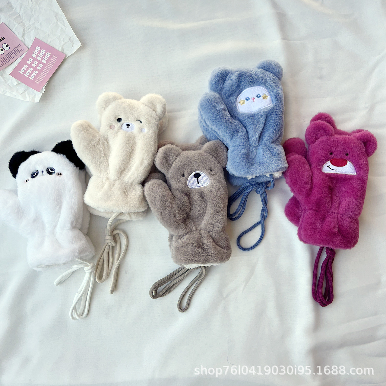귀여운 어린이 따뜻한 장갑 겨울 방추위 두꺼운 더블 레이어 만화 소년 소녀를위한 동물 모양의 봉제 장갑스토어 가기