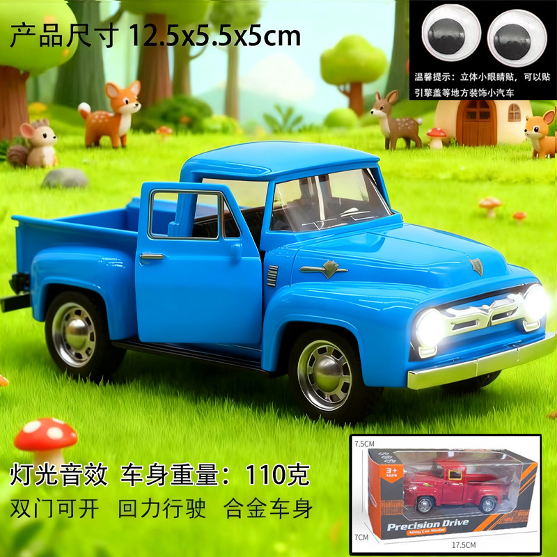 • 작은 [파란색] 픽업트럭 [소리와 빛 포함] + 작은 눈 스티커