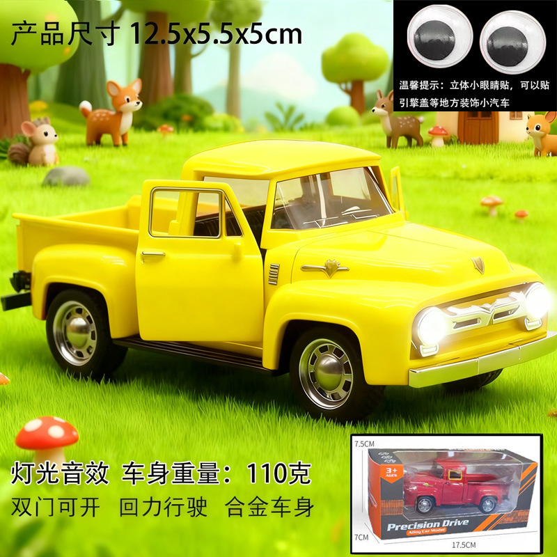 • 작은 [노란색] 픽업트럭 [소리와 빛 포함] + 작은 눈 스티커