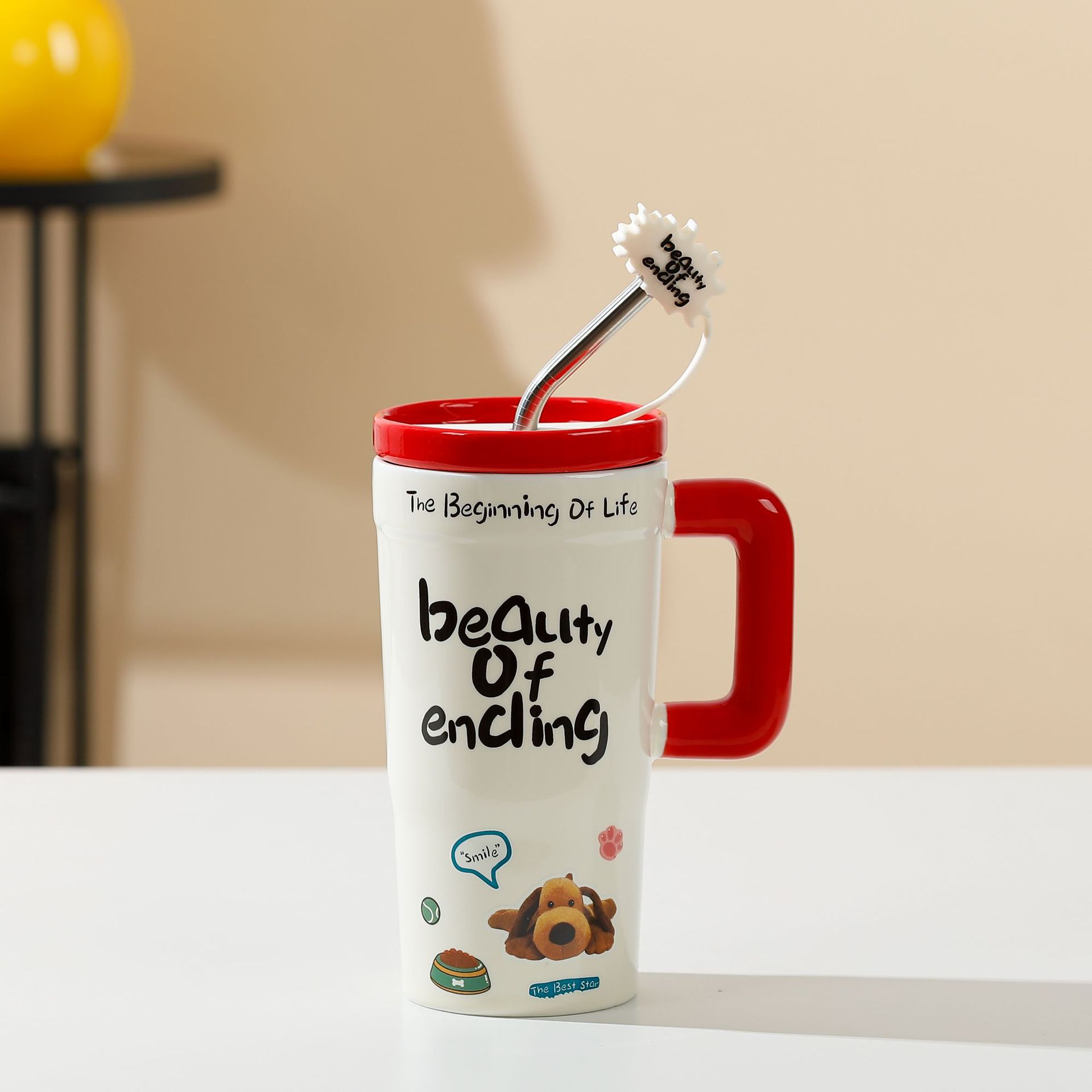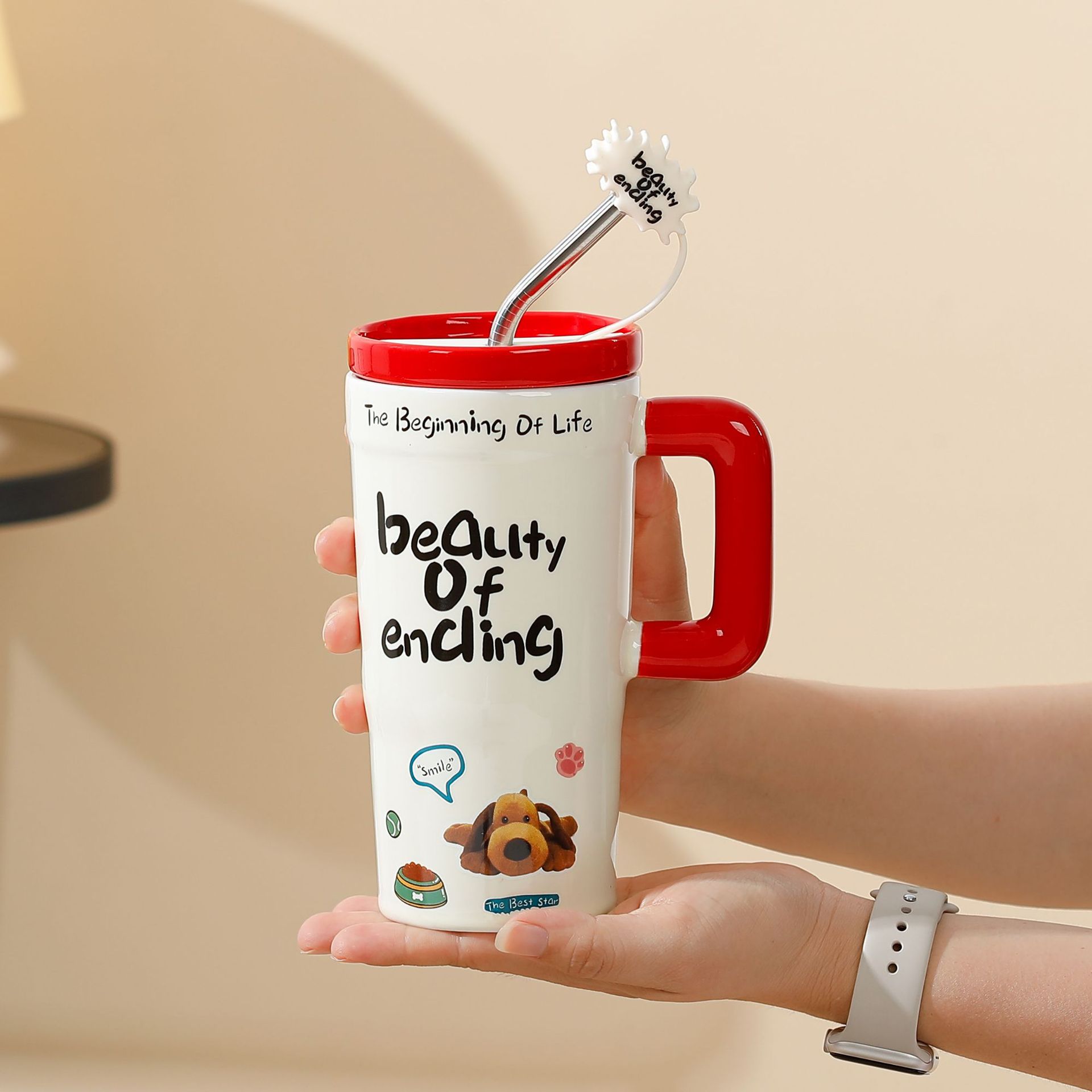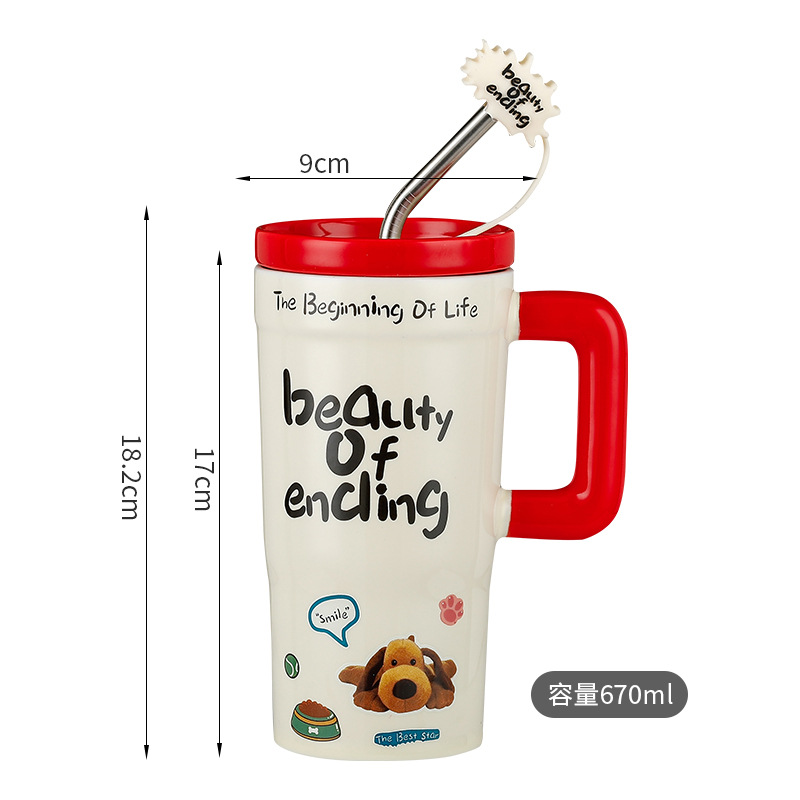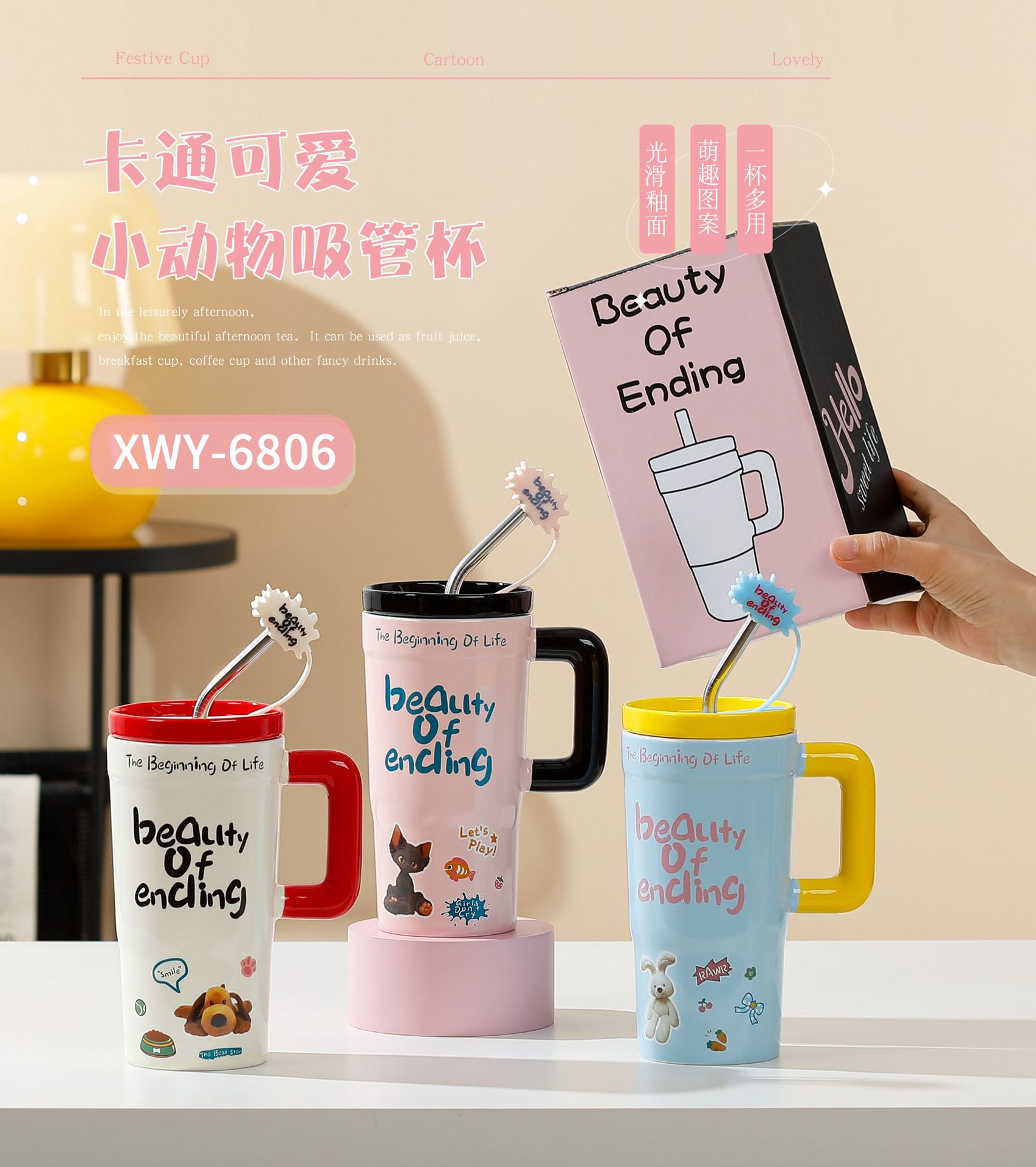 만화 밀짚 컵 소녀 높은 가치 여름 홈 세라믹 컵 뚜껑 사무실 찻잔 선물 도매