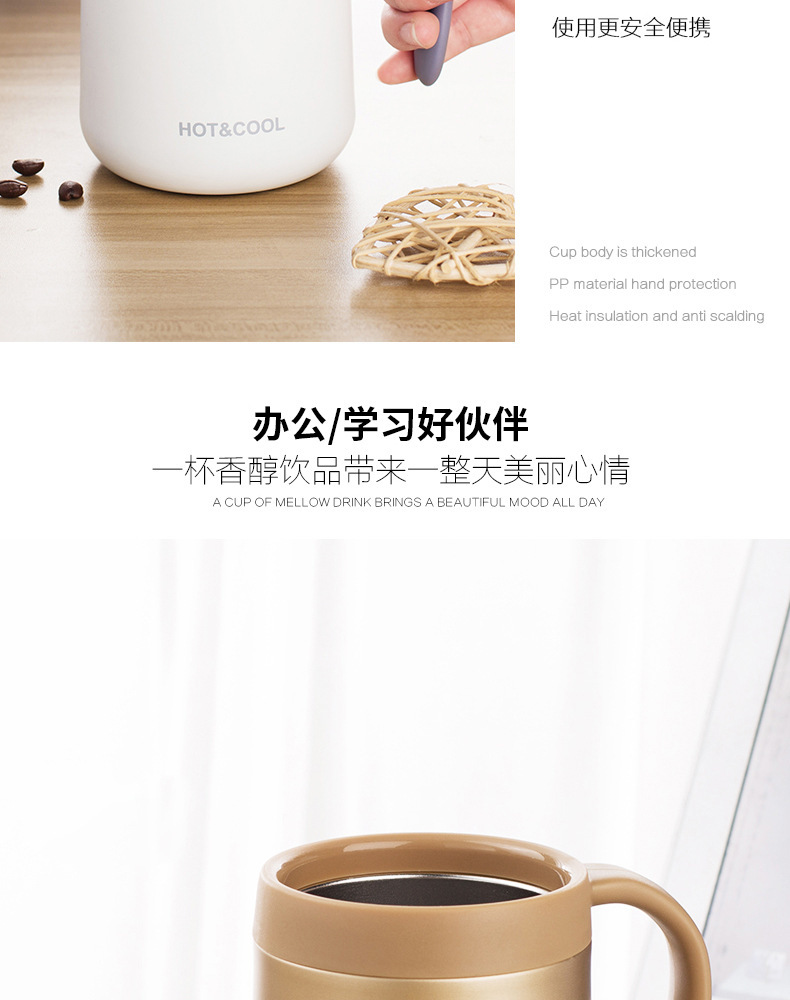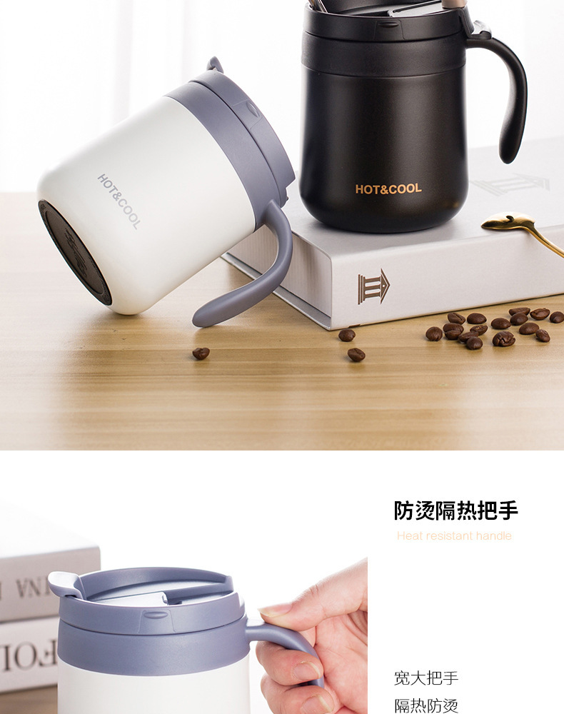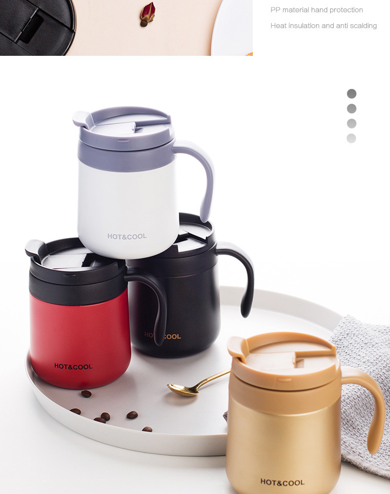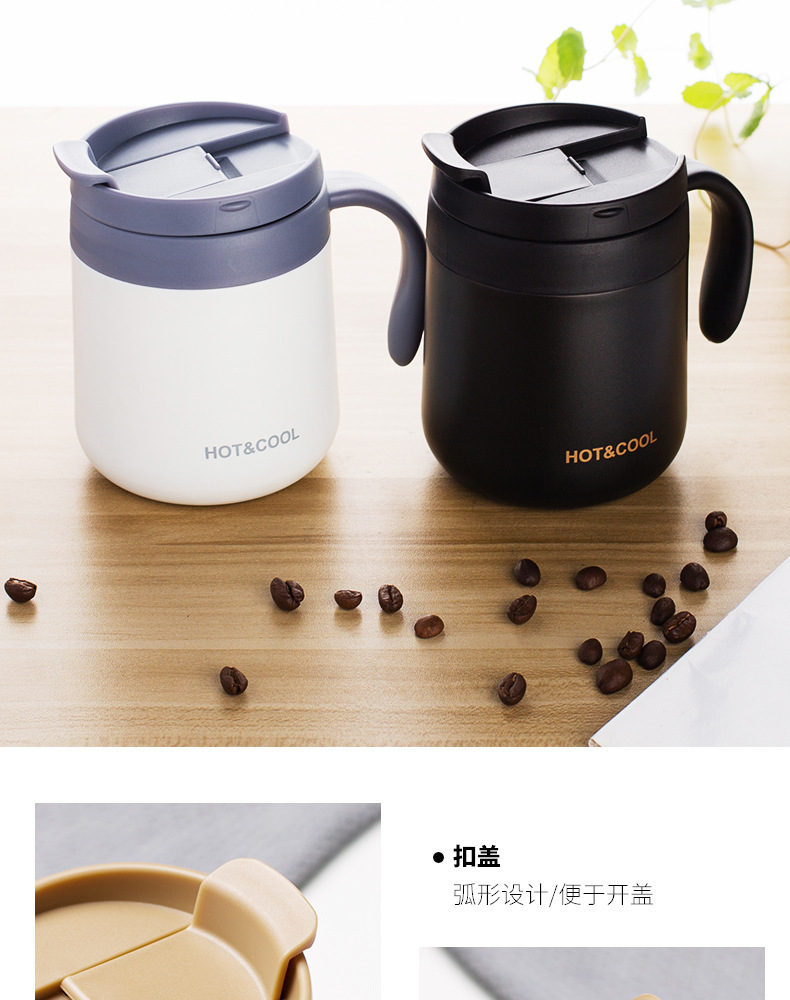 손잡이가 있는 국경 간 304 스테인레스 스틸 커피 컵, 이중층 진공 단열 컵, 로고가 있는 비즈니스 오피스 머그