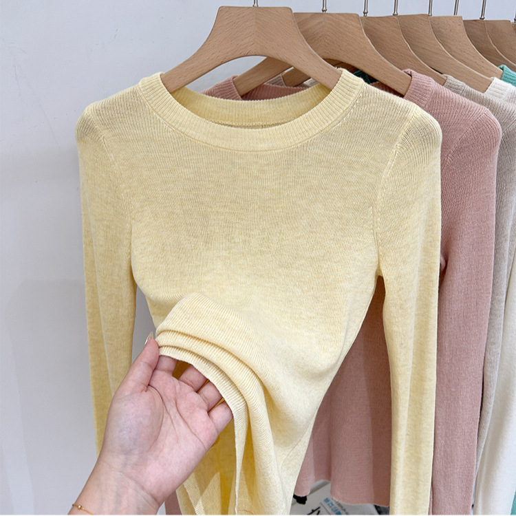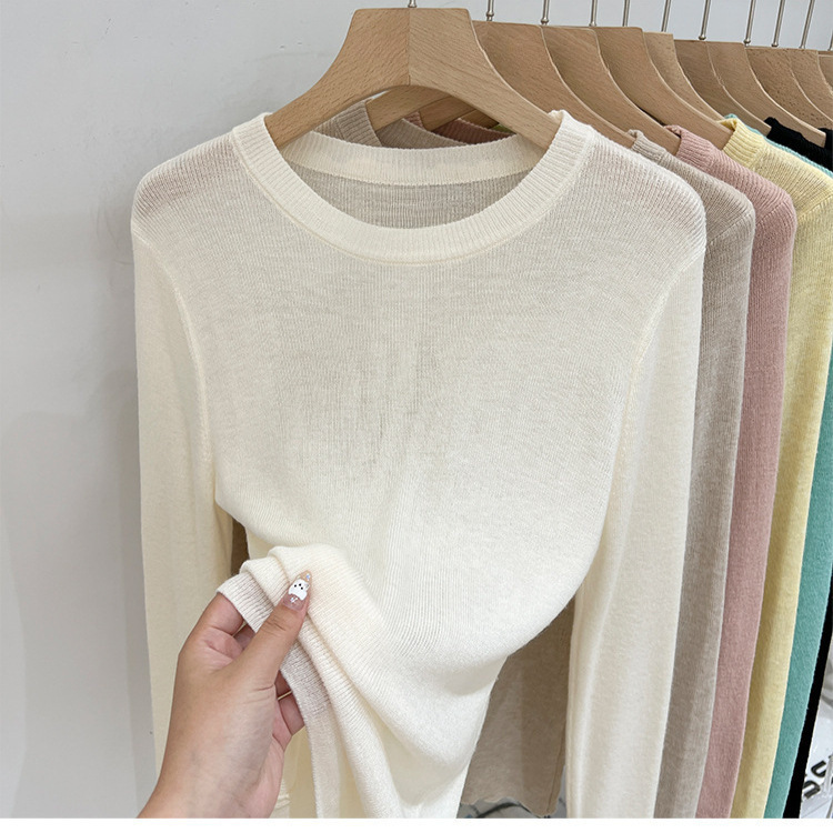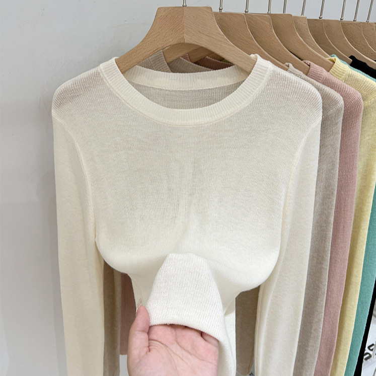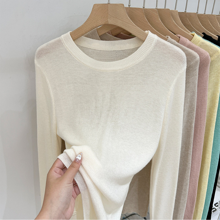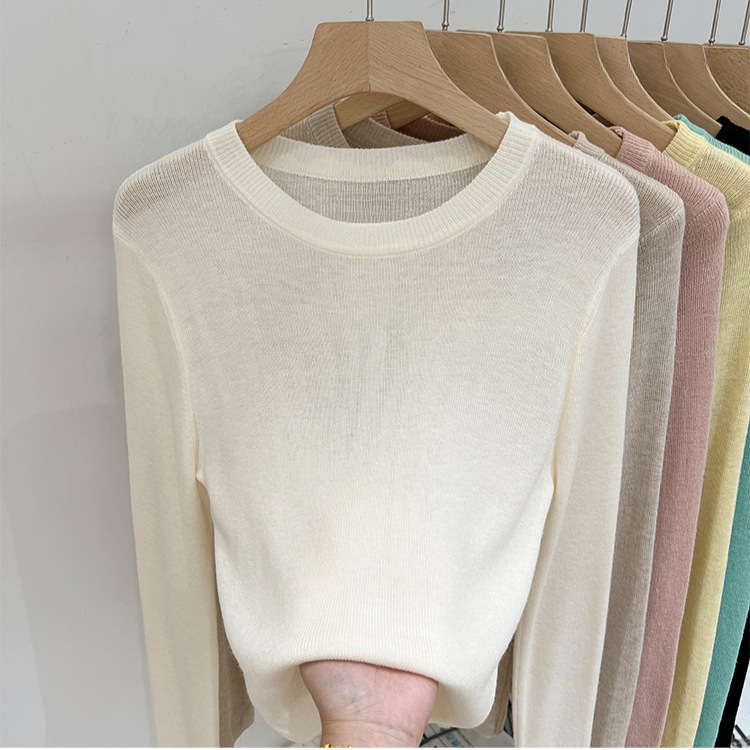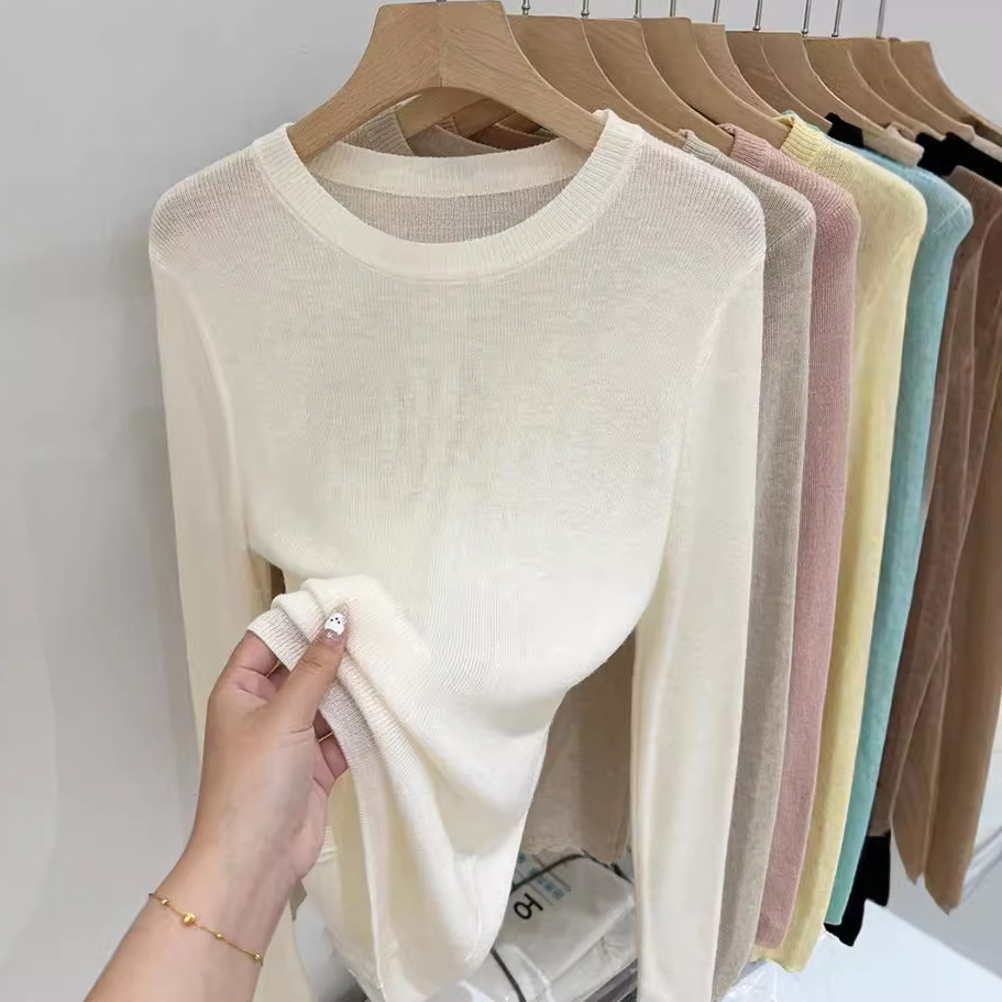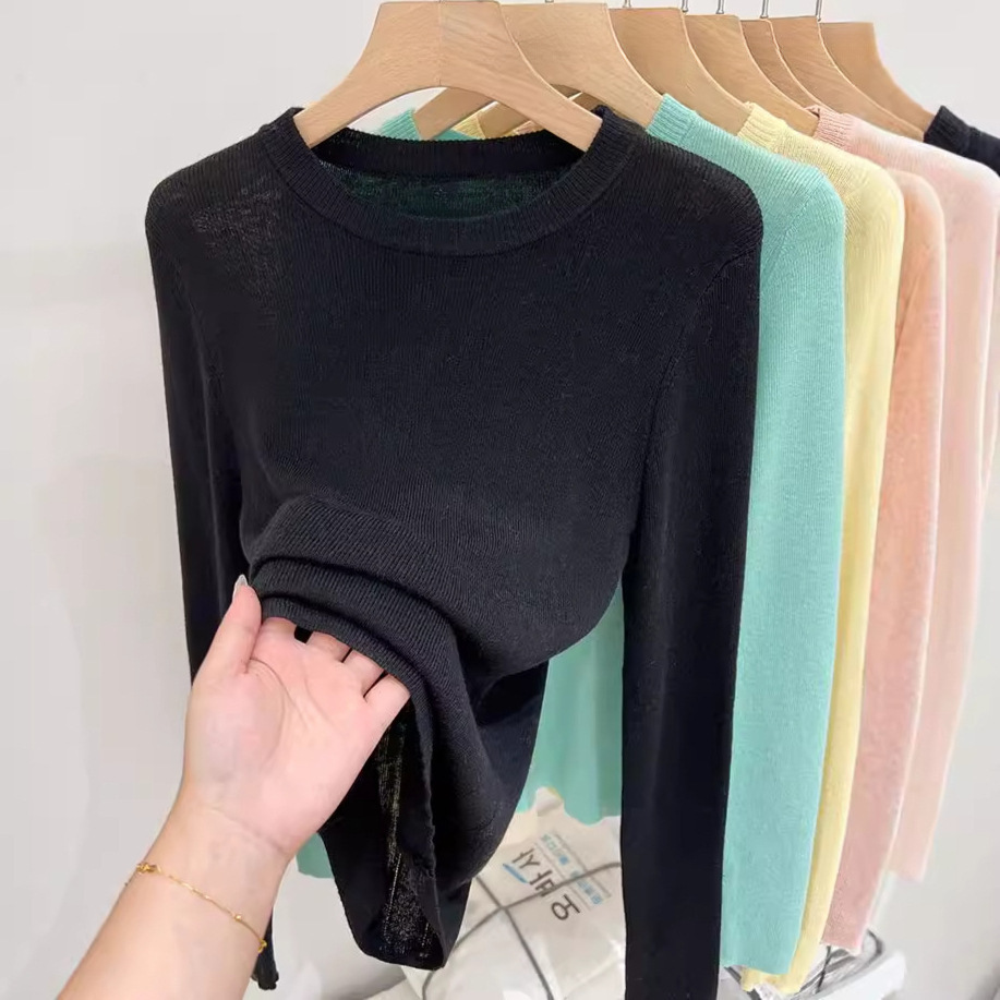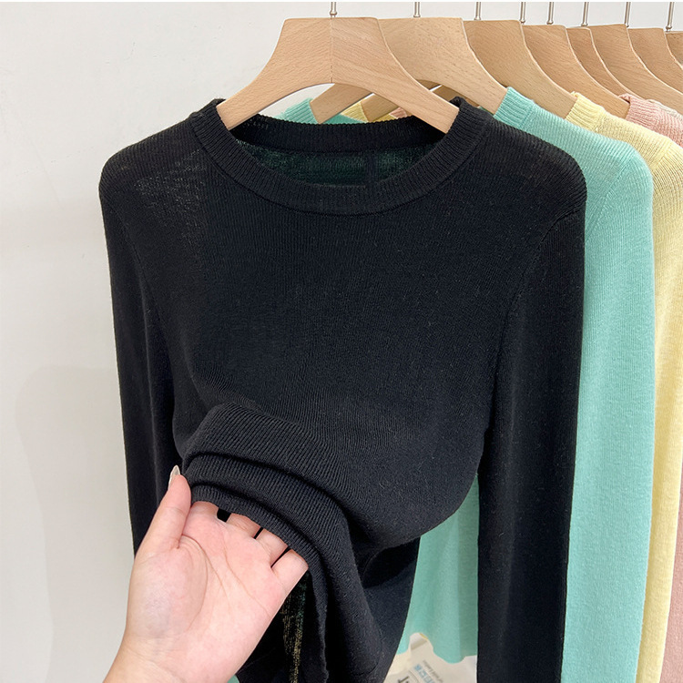 그린 긴팔 니트 티셔츠 여성 여름 상의 2026년 신상 심플하고 다용도로 활용 가능한 여성용 얇은 기본 티셔츠