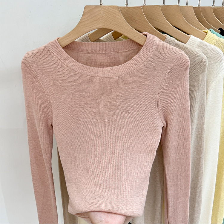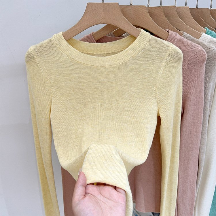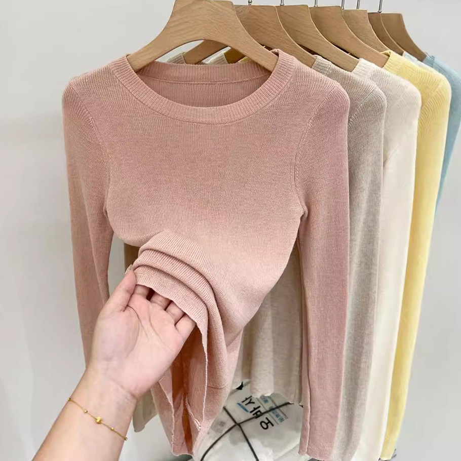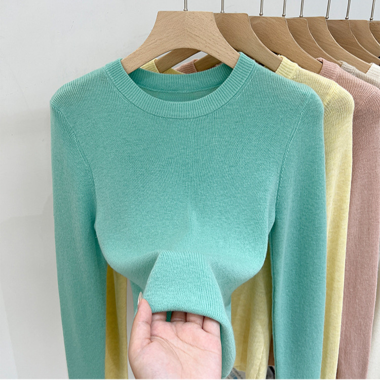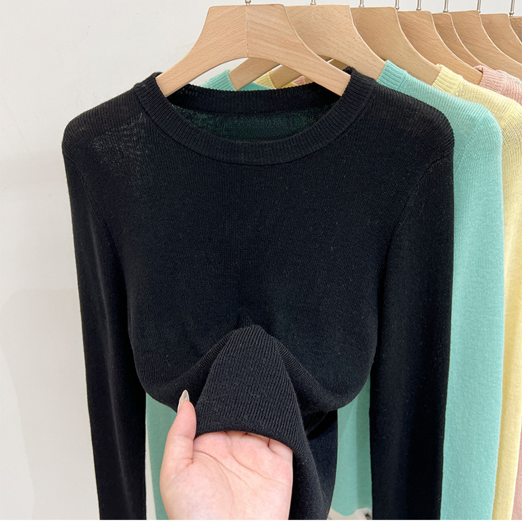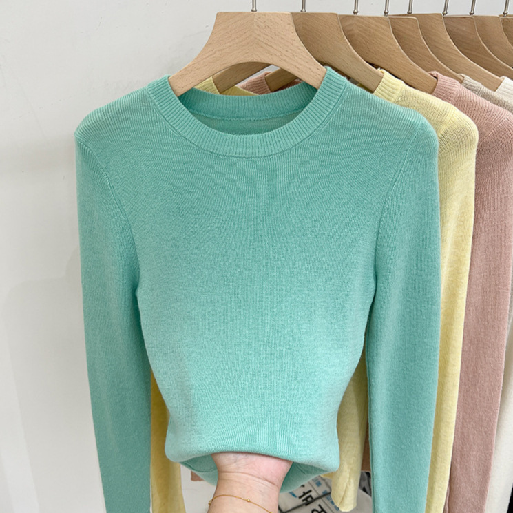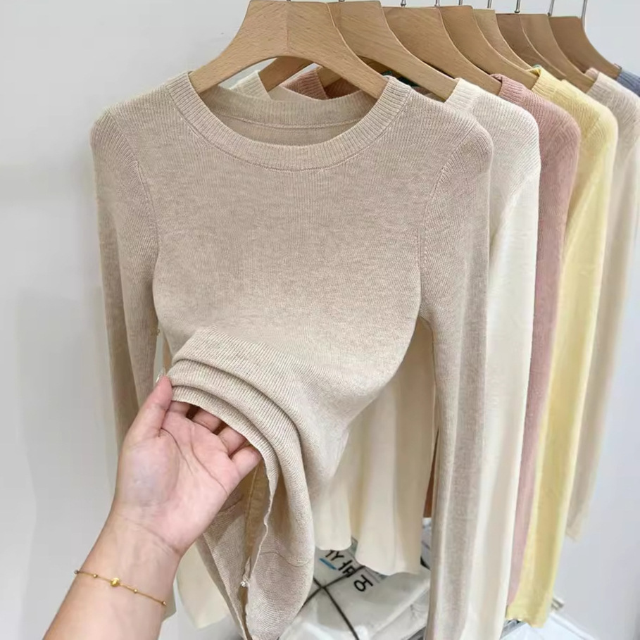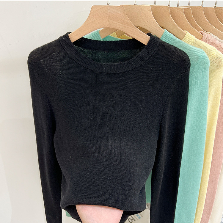 그린 긴팔 니트 티셔츠 여성 여름 상의 2026년 신상 심플하고 다용도로 활용 가능한 여성용 얇은 기본 티셔츠