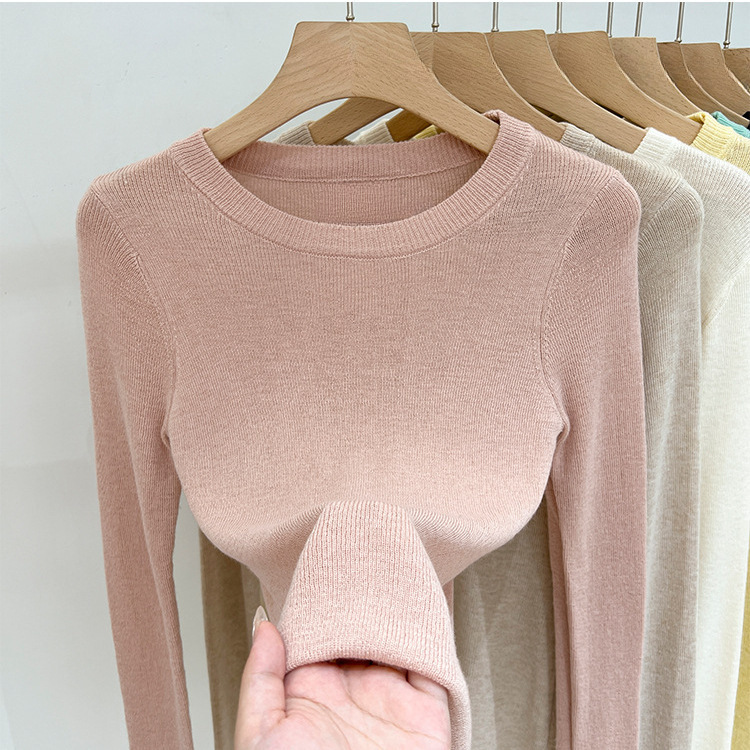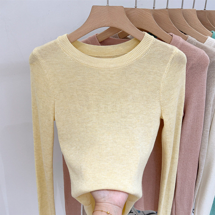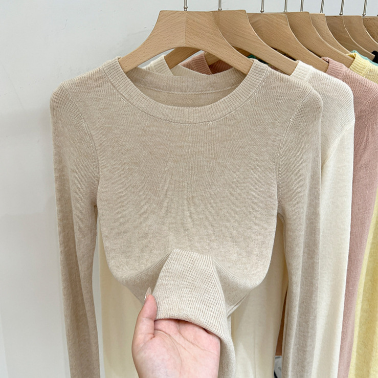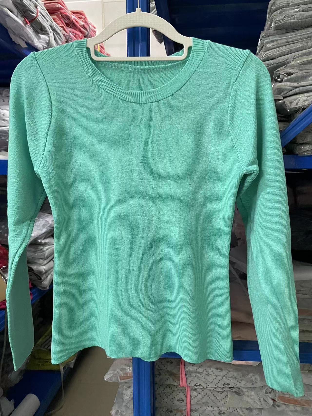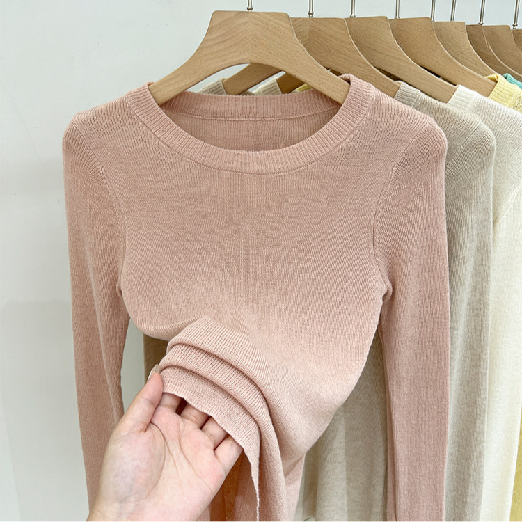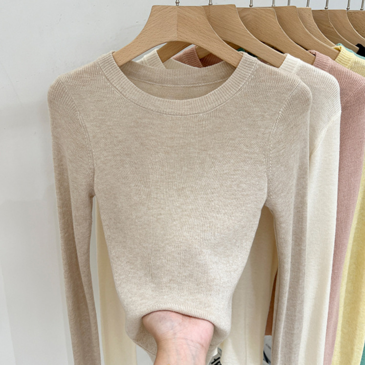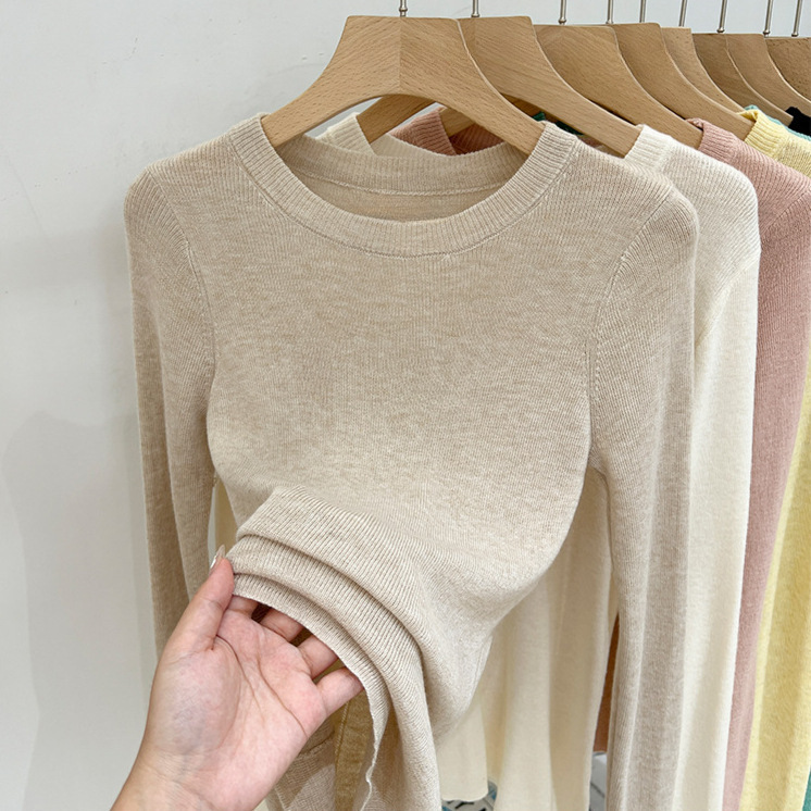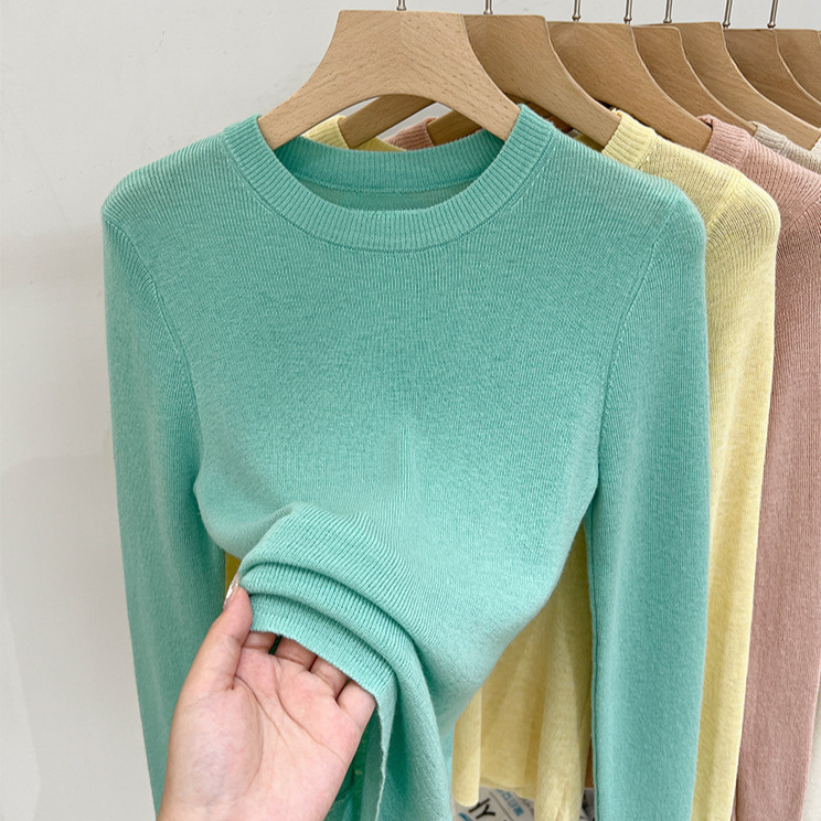 그린 긴팔 니트 티셔츠 여성 여름 상의 2026년 신상 심플하고 다용도로 활용 가능한 여성용 얇은 기본 티셔츠스토어 가기