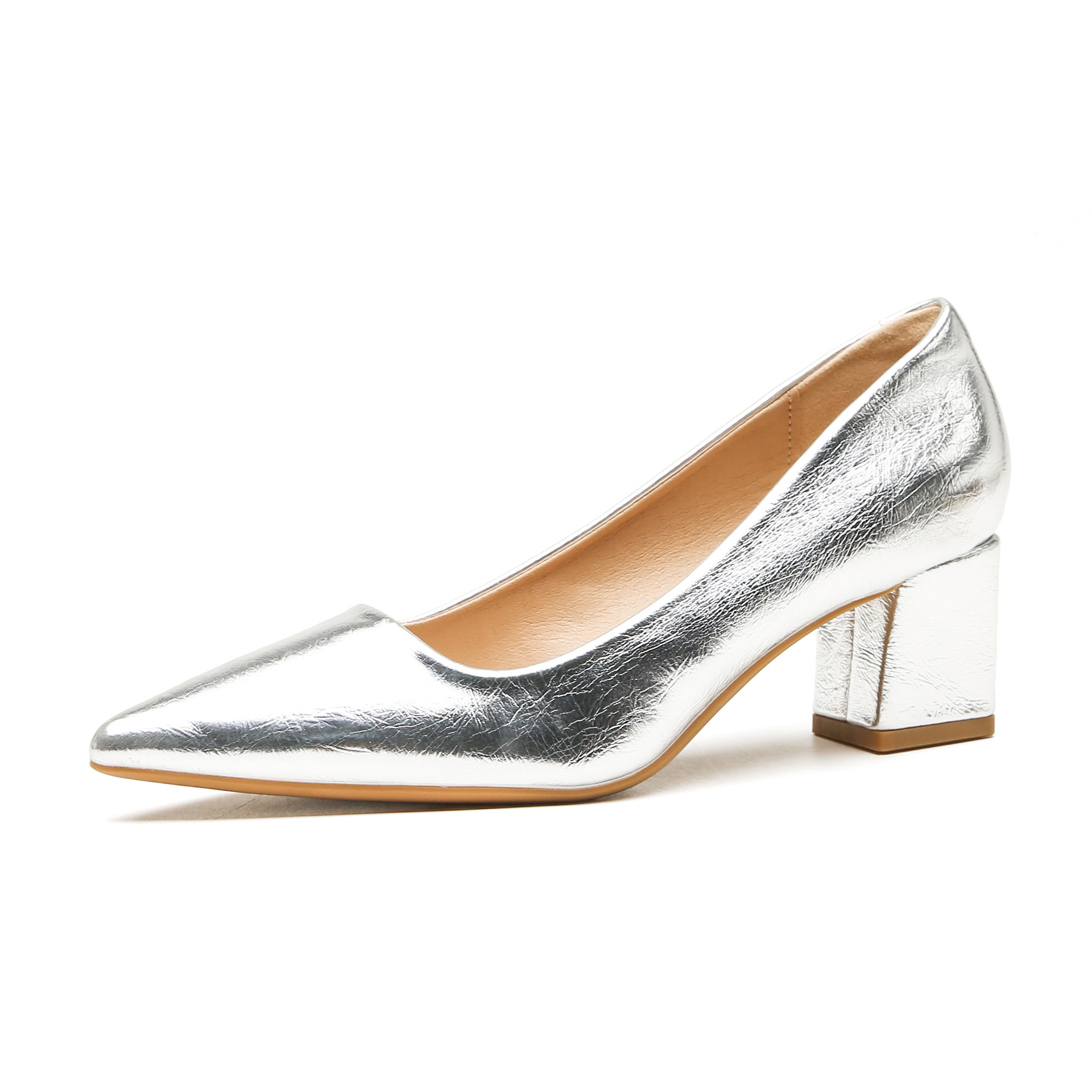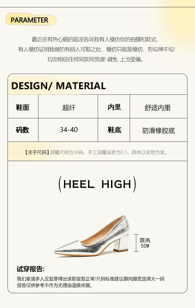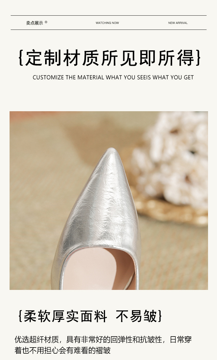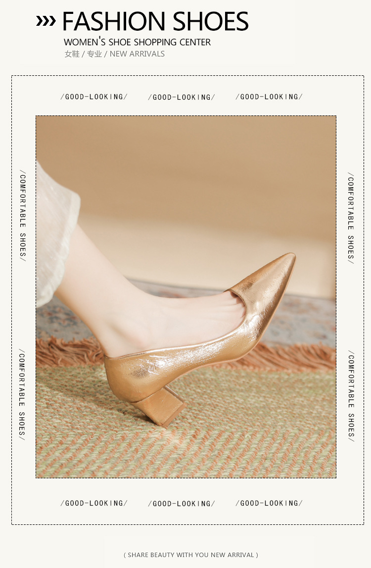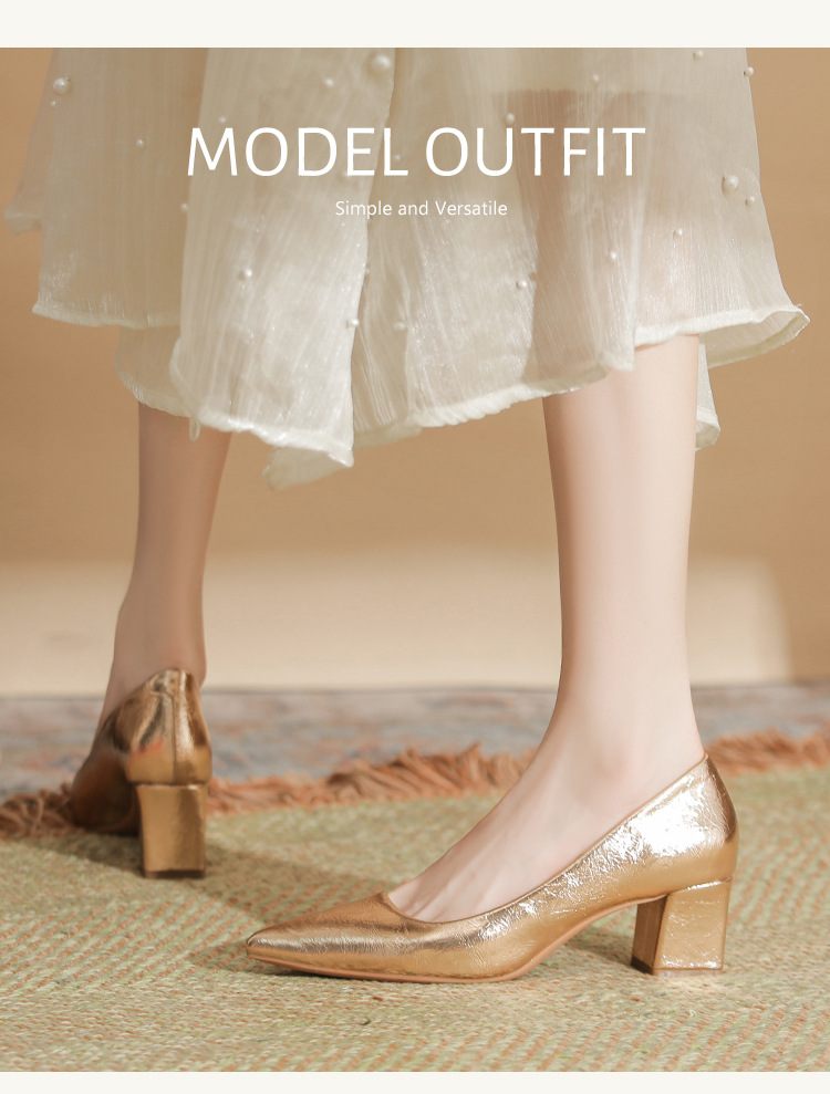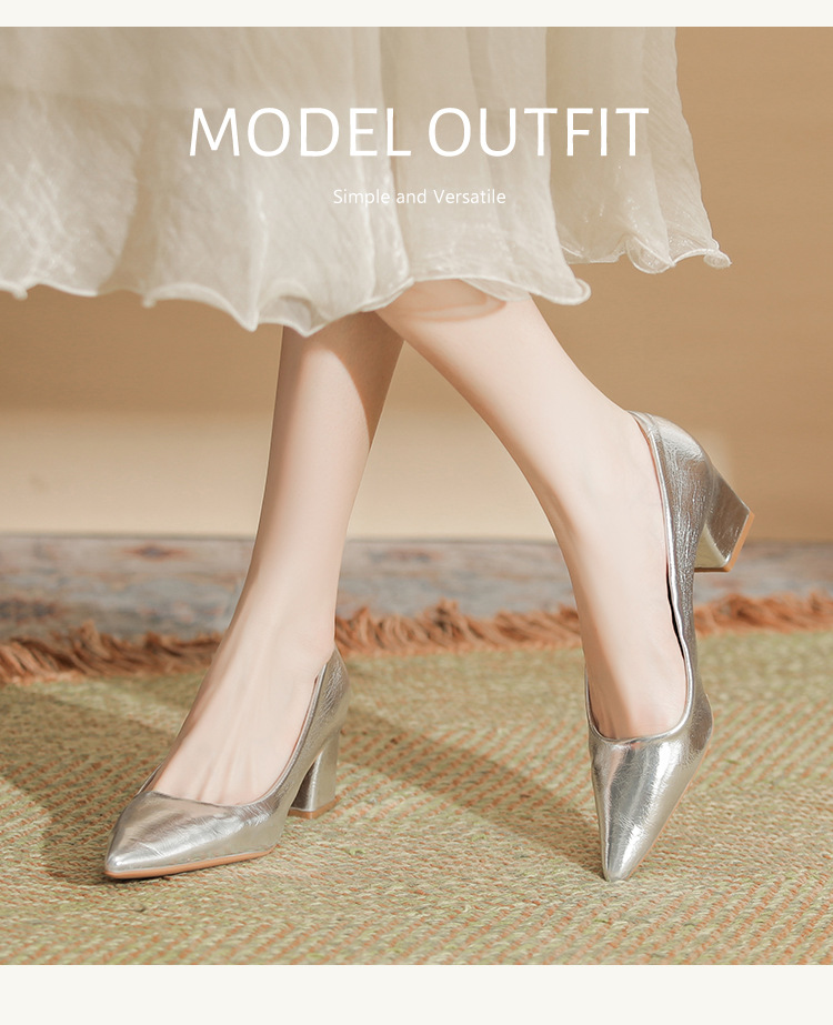 프렌치 골드 실버 하이힐 2025 새로운 스타일의 부드러운 가죽으로 발이 피곤하지 않고 오랫동안 작업할 수 있는 두꺼운 굽의 얕은 구두스토어 가기
