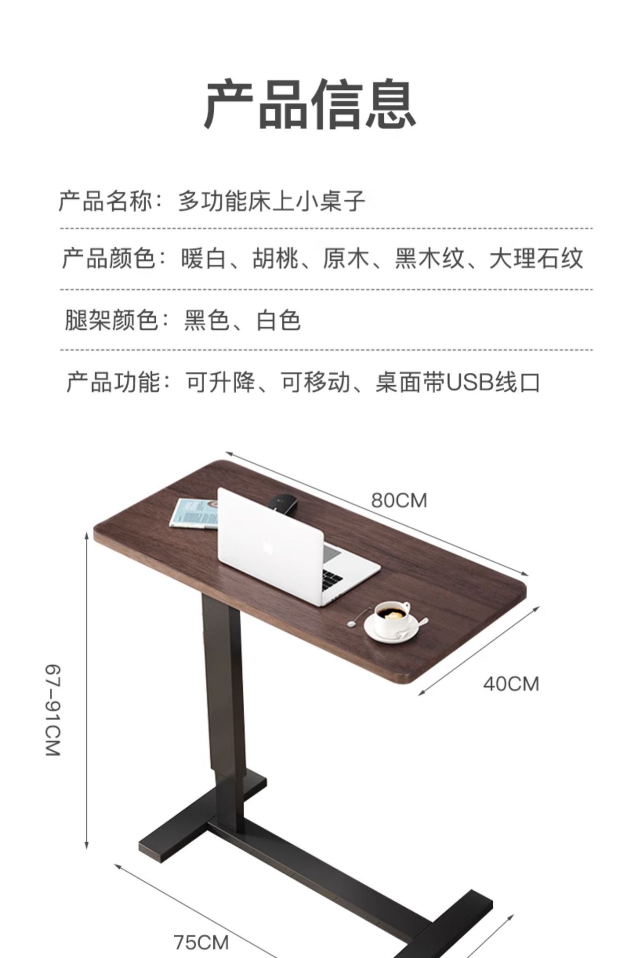 작은 테이블 노트북 테이블을 쓰는 침대 옆 테이블 이동식 리프팅 가정용 책상 침대스토어 가기