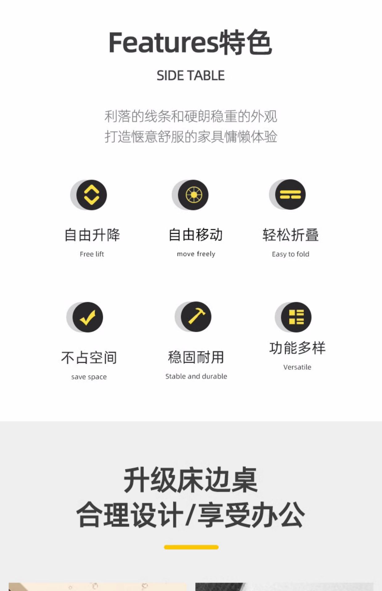 • [접이식 리프팅 및 이동] 노란색 너도밤나무 패널 + 검정색 프레임 80*40cm