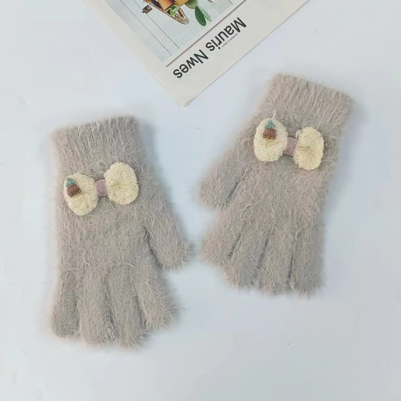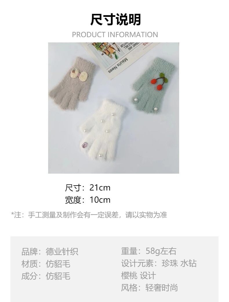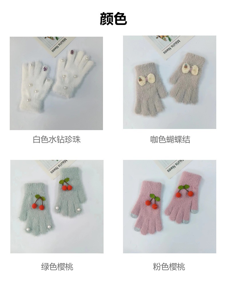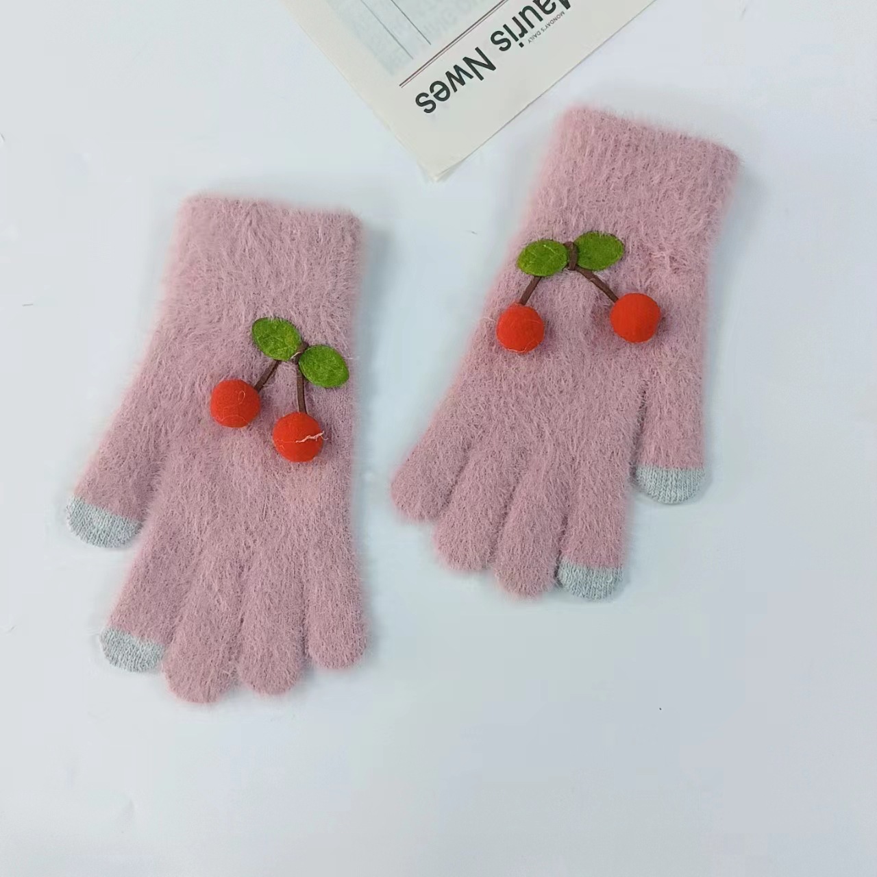 새로운 겨울 진주 다이아몬드 체리 장갑 여성 기모 따뜻한 장갑 한국식 다섯 손가락 니트 장갑