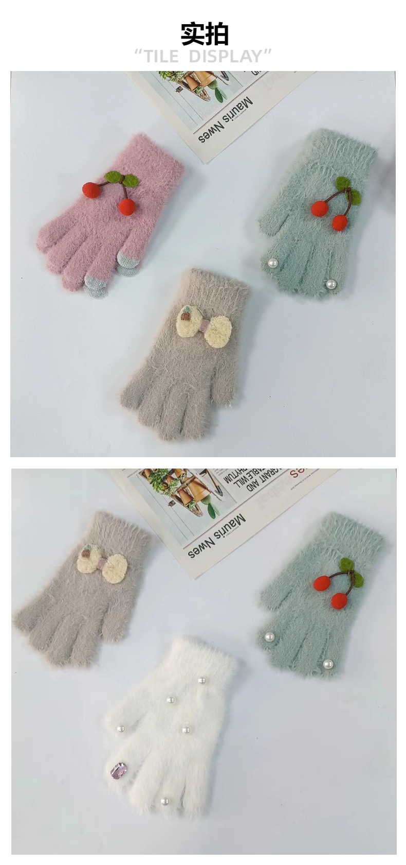 새로운 겨울 진주 다이아몬드 체리 장갑 여성 기모 따뜻한 장갑 한국식 다섯 손가락 니트 장갑스토어 가기