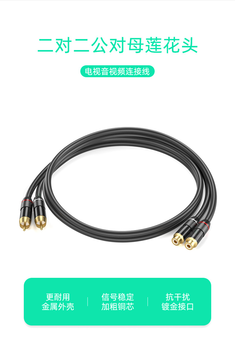 더블 로터스 오디오 케이블, 남성-여성, 2대2 RCA, 레드-화이트 각진 커넥터, TV 오디오 앰프 신호 케이블, 오디오 케이블