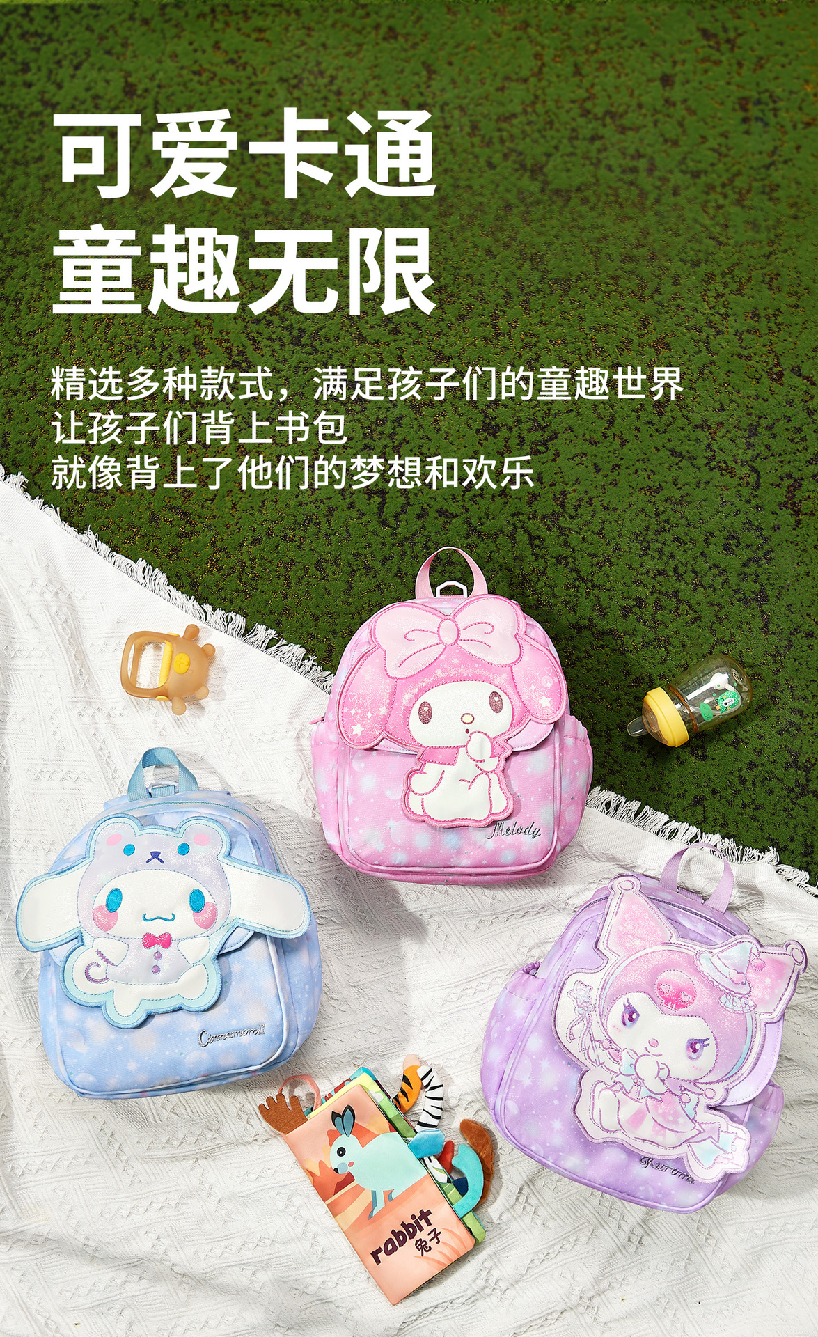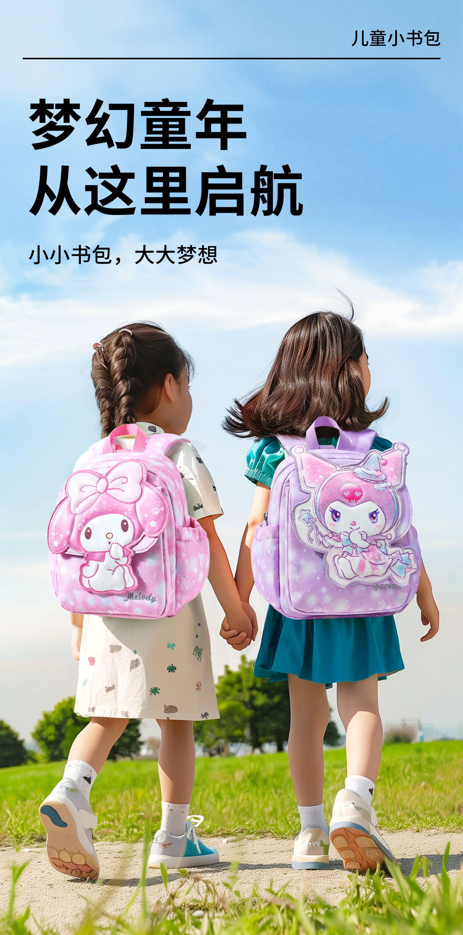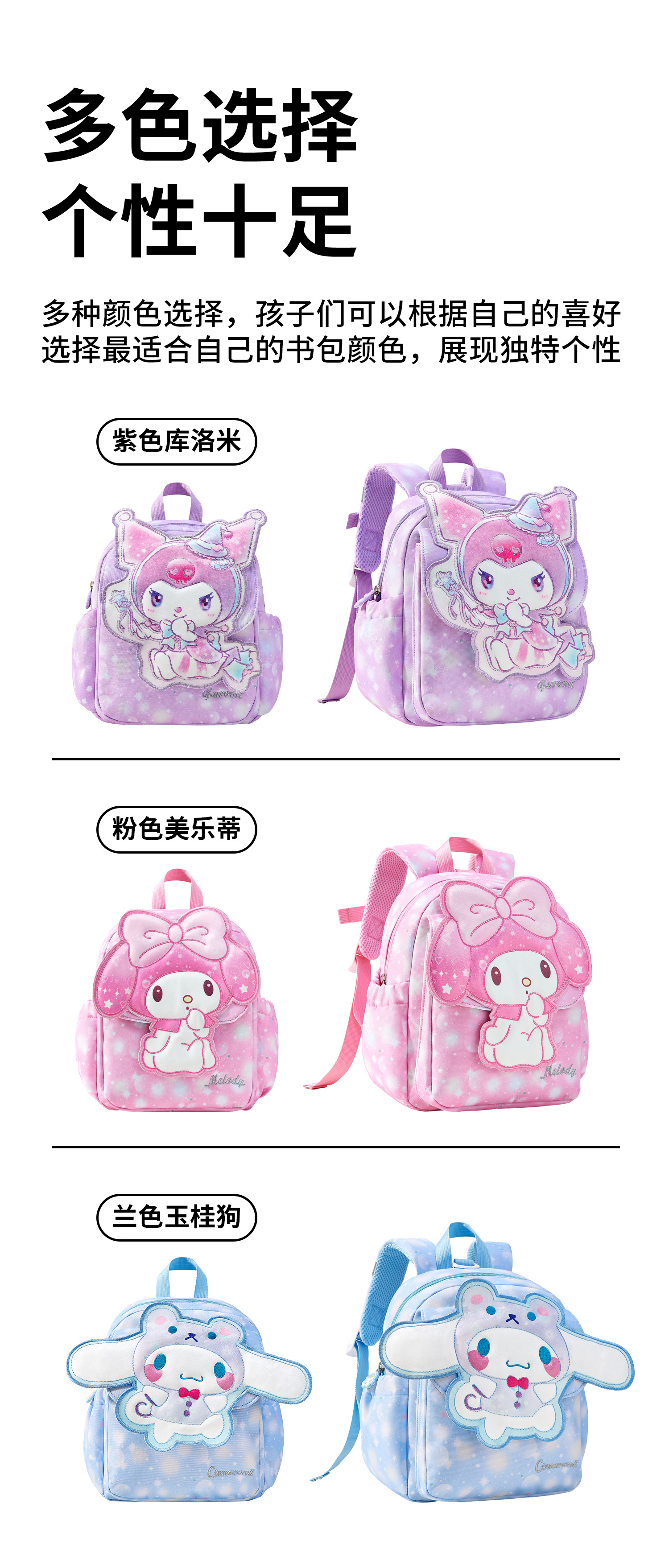 새로운 Kuromi 어린이 학교 가방 유치원 대형, 중형 및 소형 클래스 만화 배낭 소녀 귀여운 멜로디 배낭스토어 가기