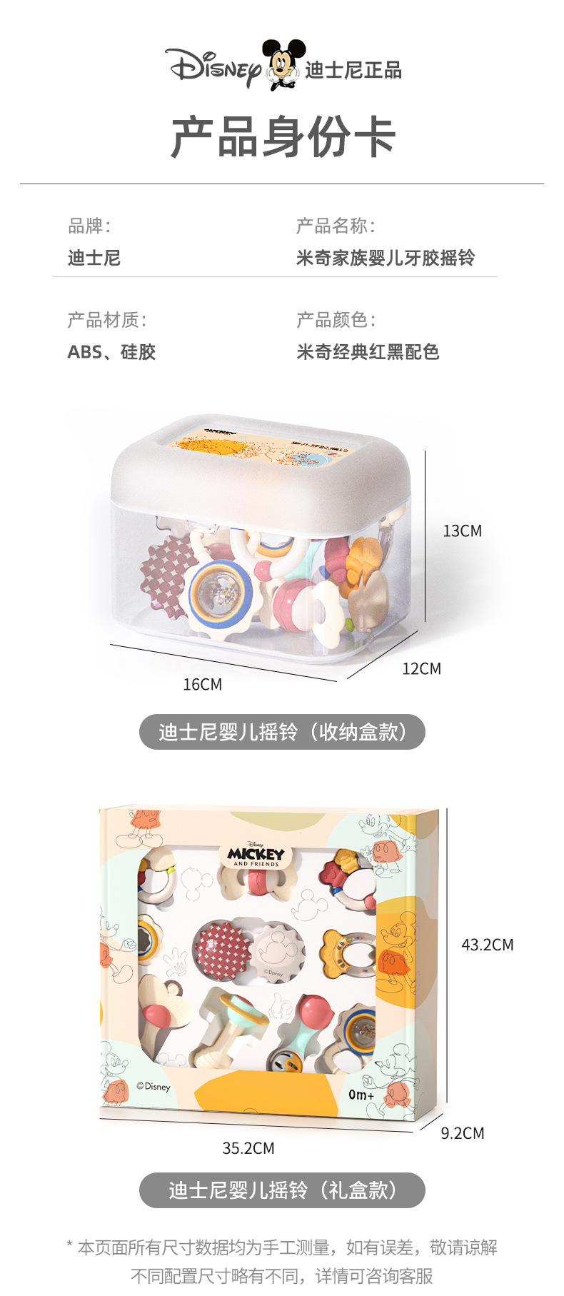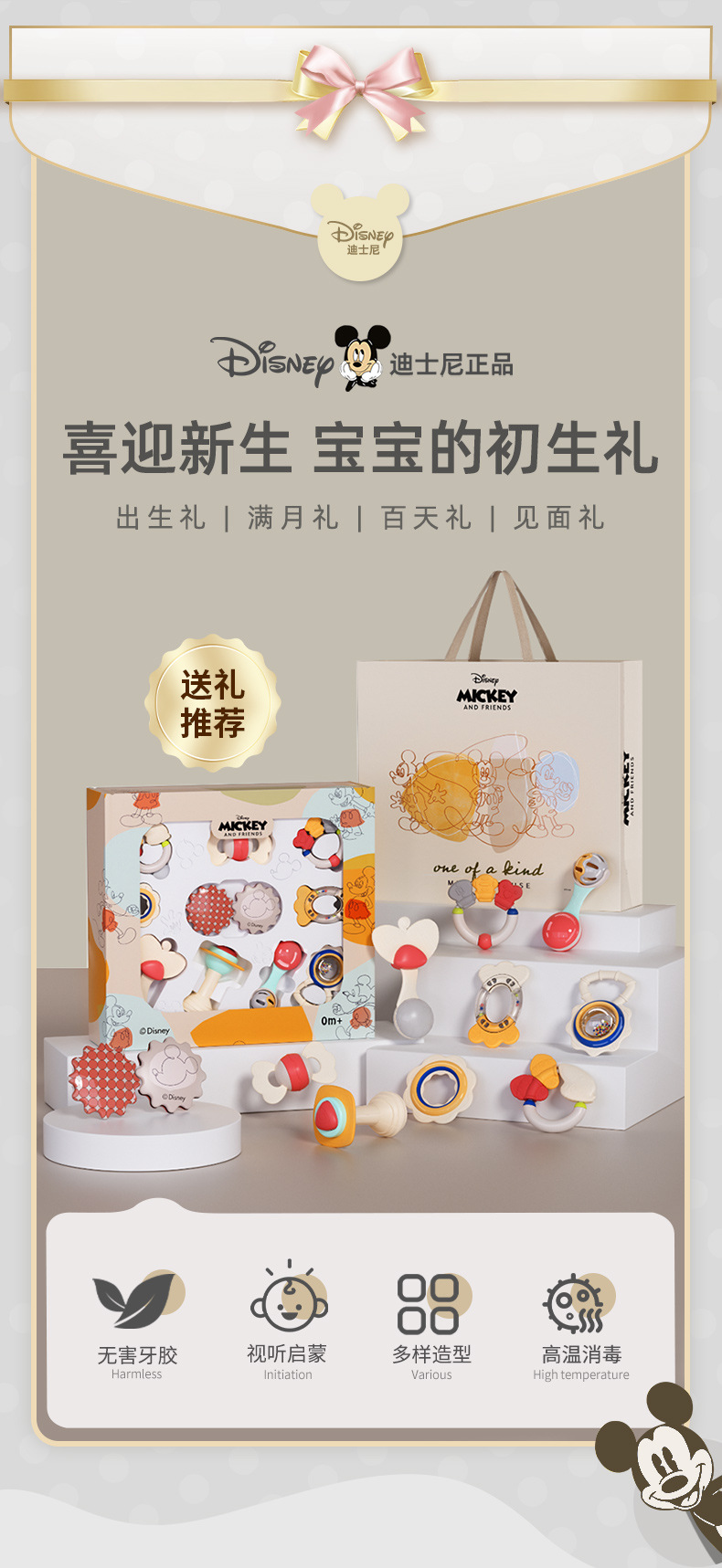 • 미키 패밀리 치발기 선물 상자 [수납 상자 + 딸랑이 + 비주얼 카드 + 선물 가방]