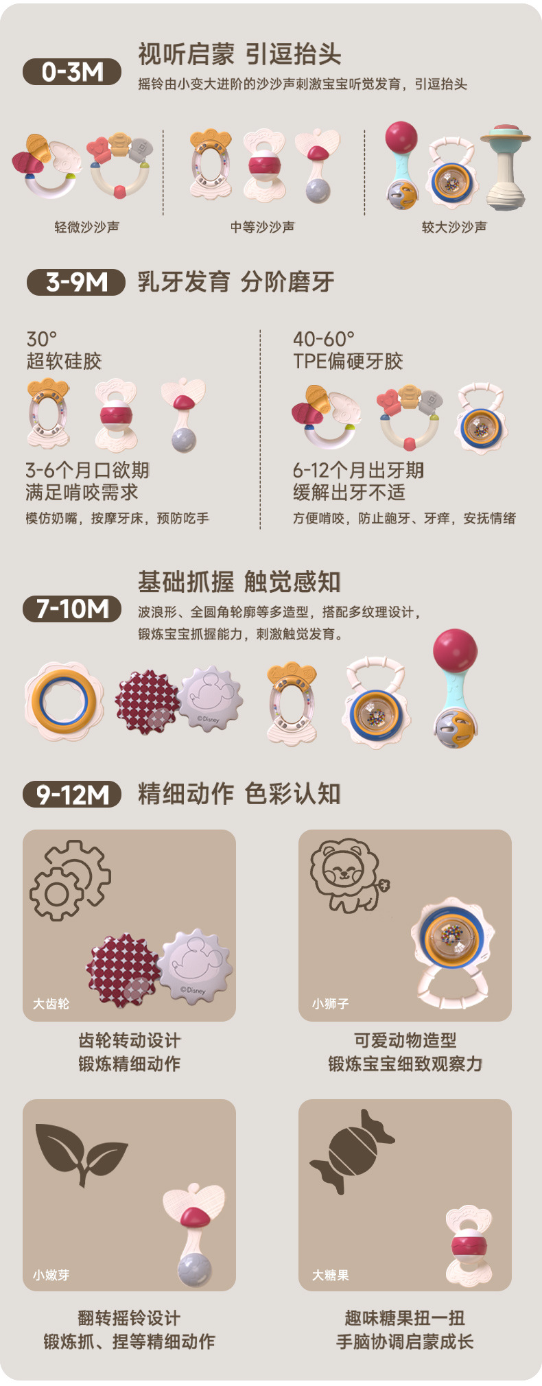 디즈니 아기 장난감 0-3-6 초승달 딸랑이 선물 상자 신생아 보름달 아기 장난감 세트