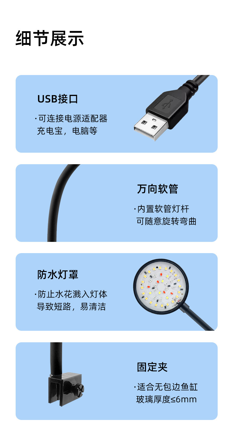 물고기 탱크 조명 led 조명 물 공장 탱크 작은 클립 빛 작은 미니 밤 빛 빛나는 보는 금붕어 탱크 USB 낮은 전압스토어 가기