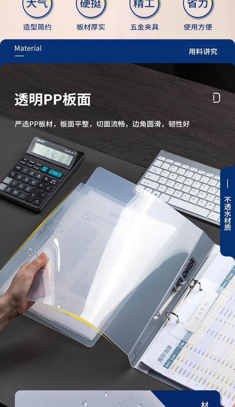 델리 5381 폴더 테스트 용지 폴더 A4 바인더 투명 폴더 더블 홀 바인딩 폴더 컬렉션 스토리지 폴더