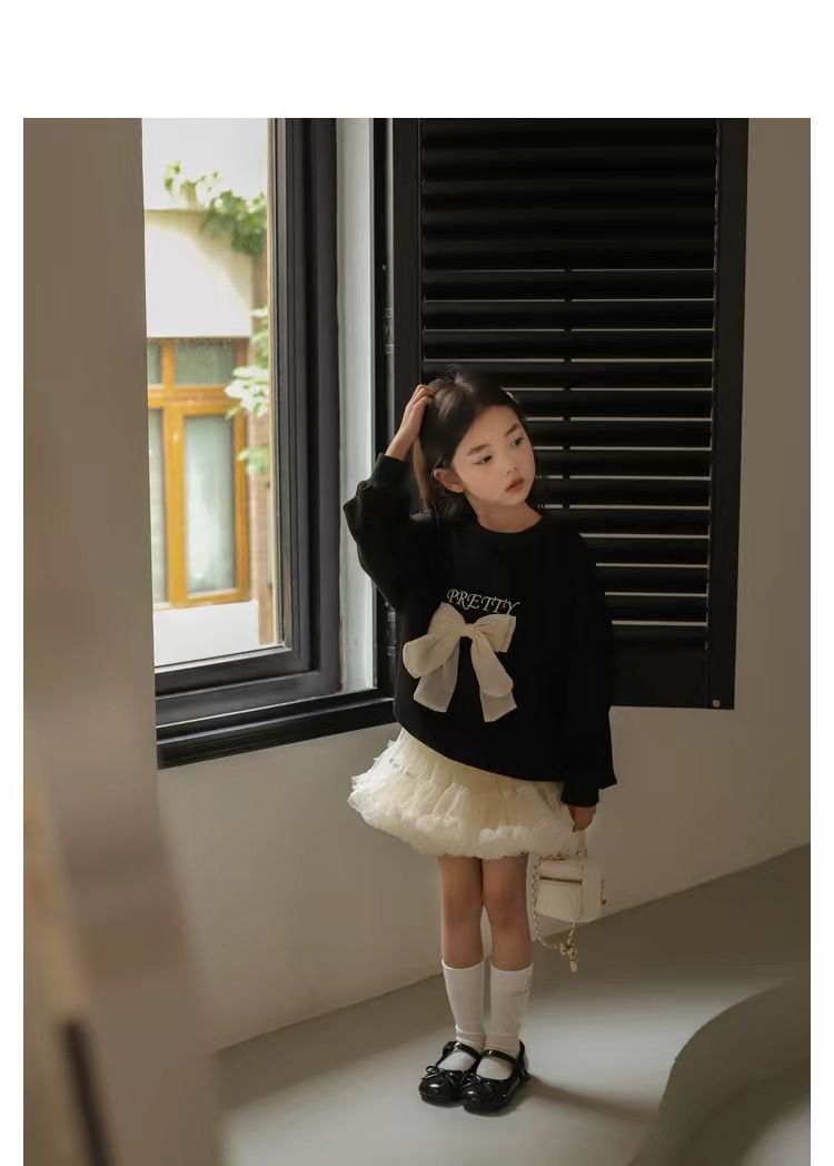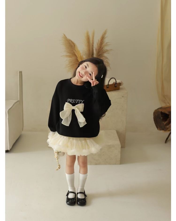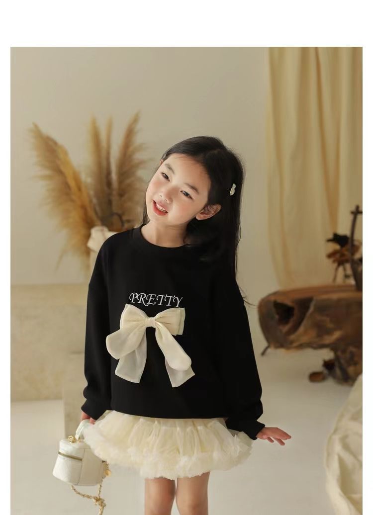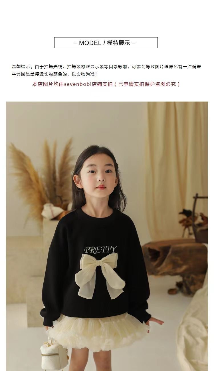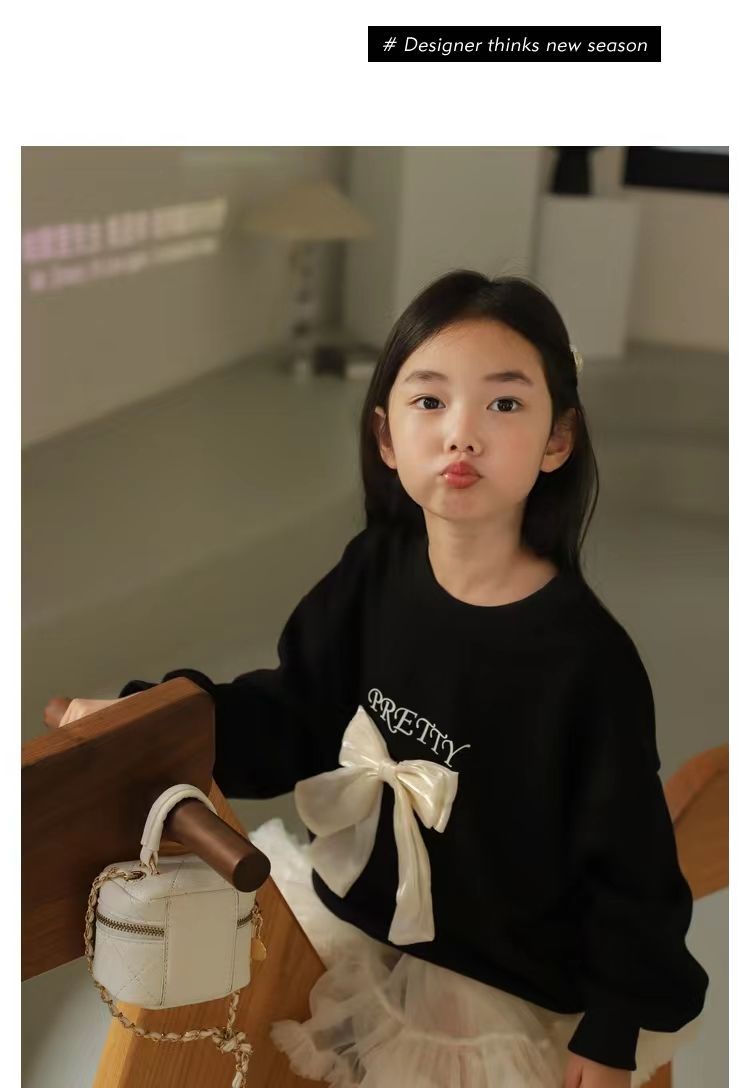 소녀 스웨트 셔츠 가을 새로운 어린이 활 긴팔 크루 넥 티셔츠 달콤한 캐주얼 탑 걸스 가을과 겨울 옷스토어 가기