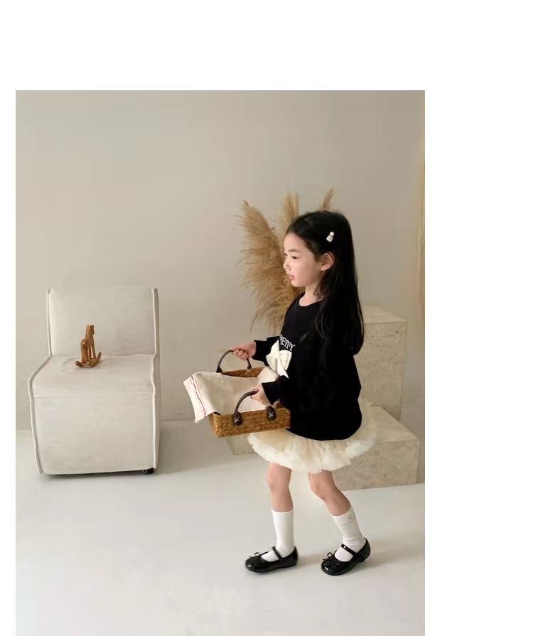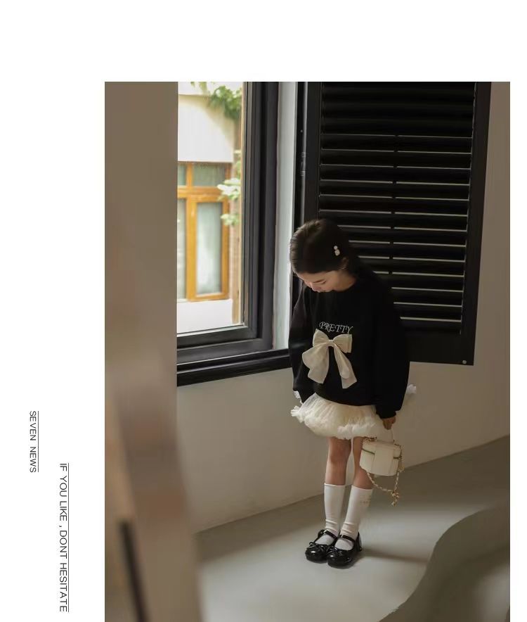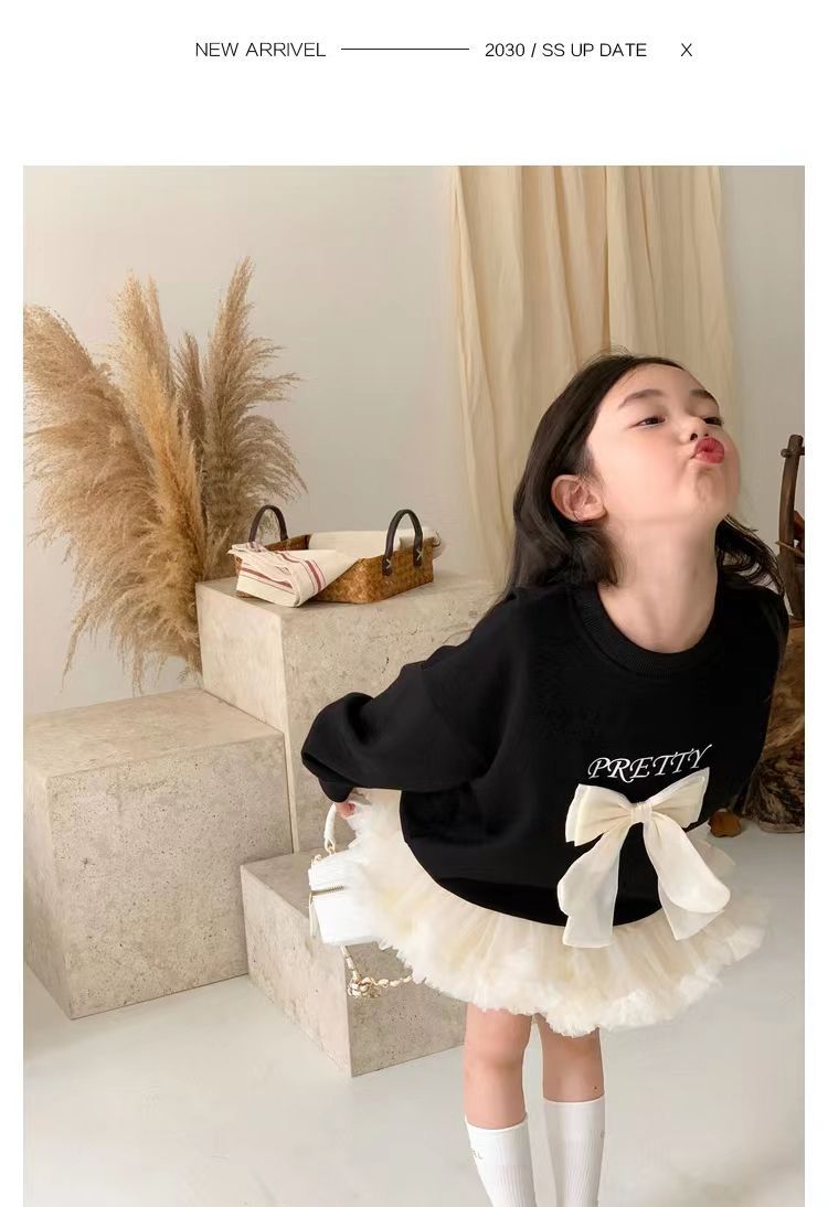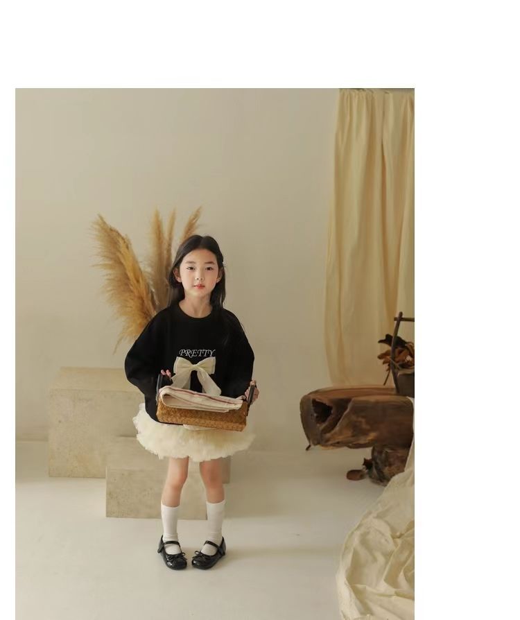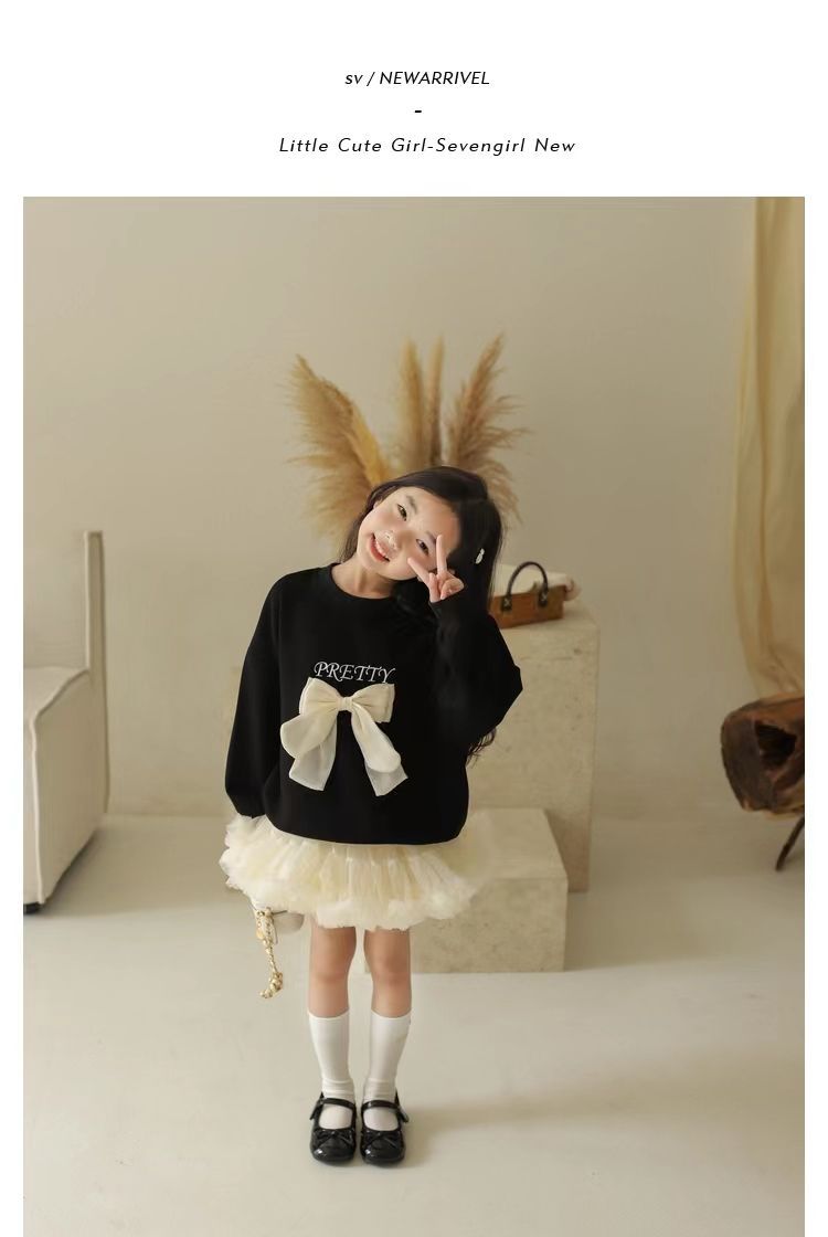 소녀 스웨트 셔츠 가을 새로운 어린이 활 긴팔 크루 넥 티셔츠 달콤한 캐주얼 탑 걸스 가을과 겨울 옷스토어 가기