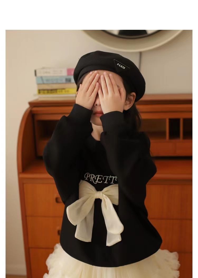 소녀 스웨트 셔츠 가을 새로운 어린이 활 긴팔 크루 넥 티셔츠 달콤한 캐주얼 탑 걸스 가을과 겨울 옷