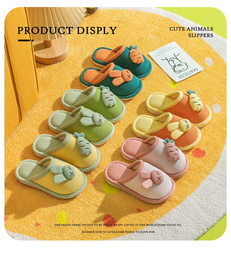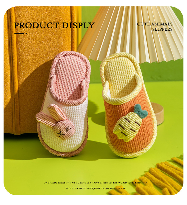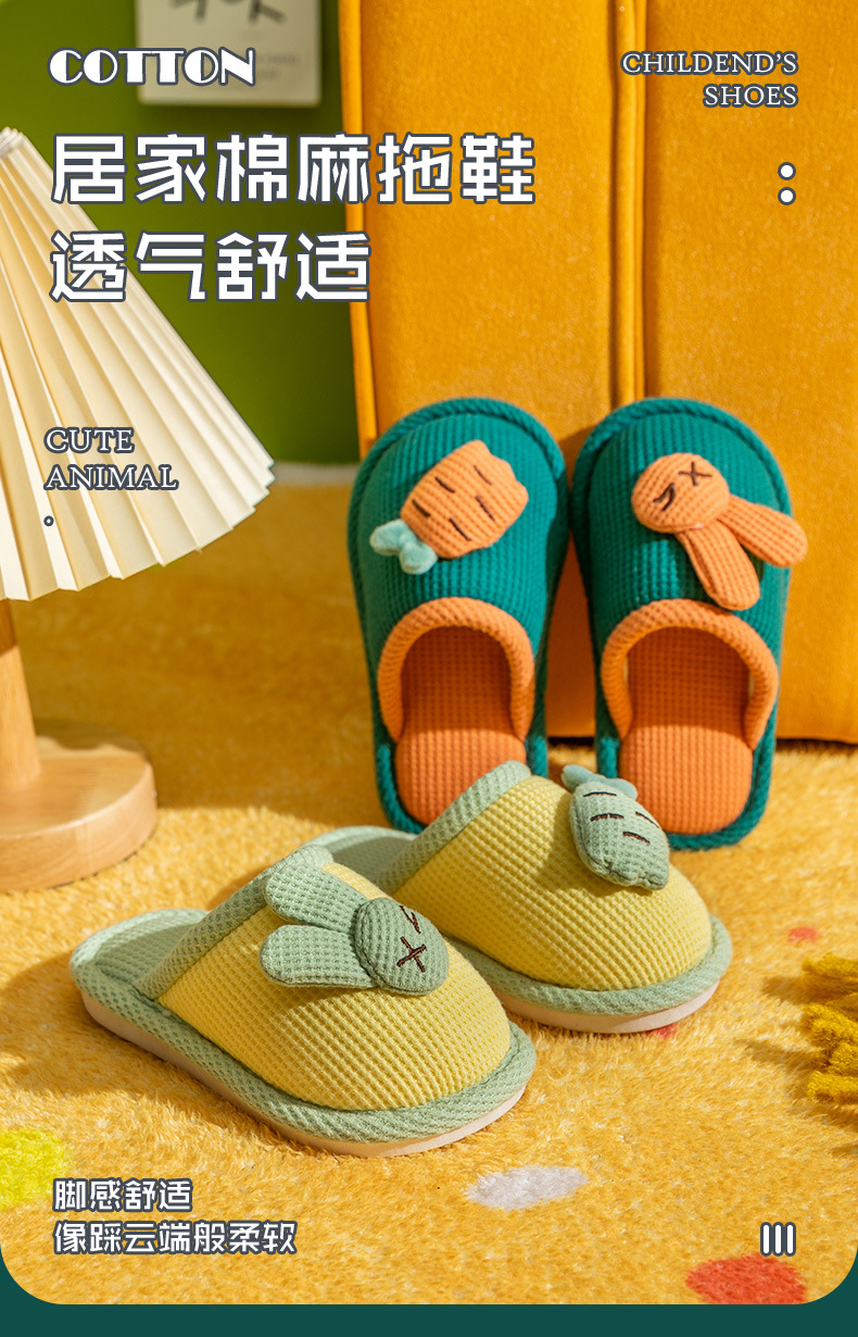어린이 면 슬리퍼, 여아 및 남아용, 가을 겨울 실내용, 미끄럼 방지, 부모-자녀용, 아기 면/린넨 슬리퍼, 만화 패턴스토어 가기