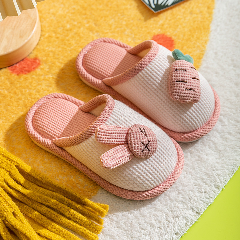 어린이 면 슬리퍼, 여아 및 남아용, 가을 겨울 실내용, 미끄럼 방지, 부모-자녀용, 아기 면/린넨 슬리퍼, 만화 패턴
