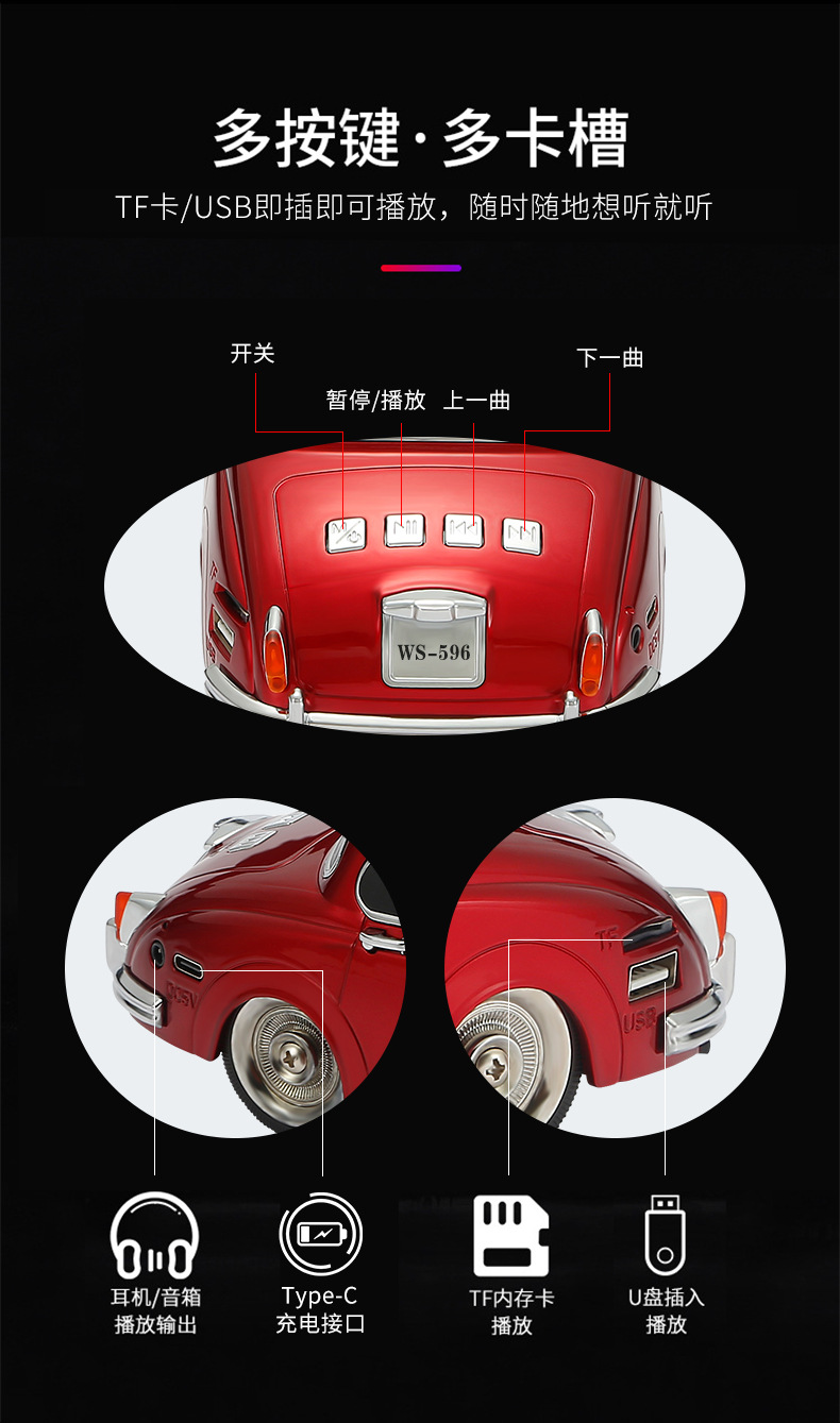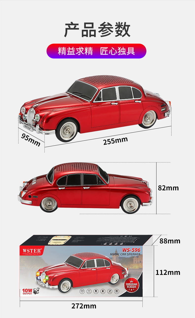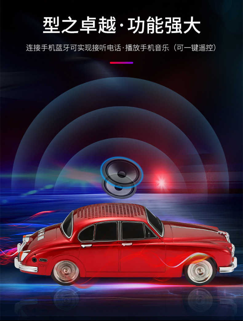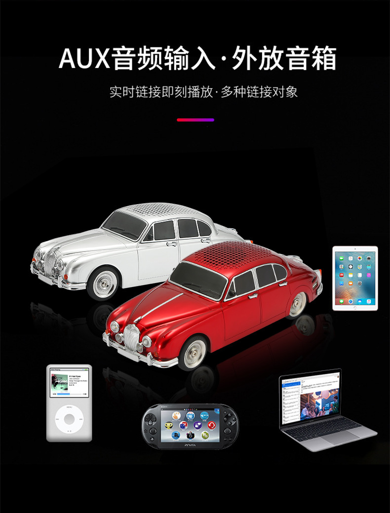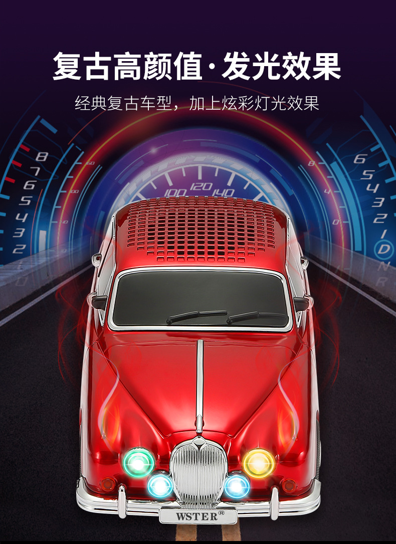 WS596 재규어 클래식카 모델 블루투스 스피커 중저음 무선 오디오 선물 외국 무역 스테레오스토어 가기