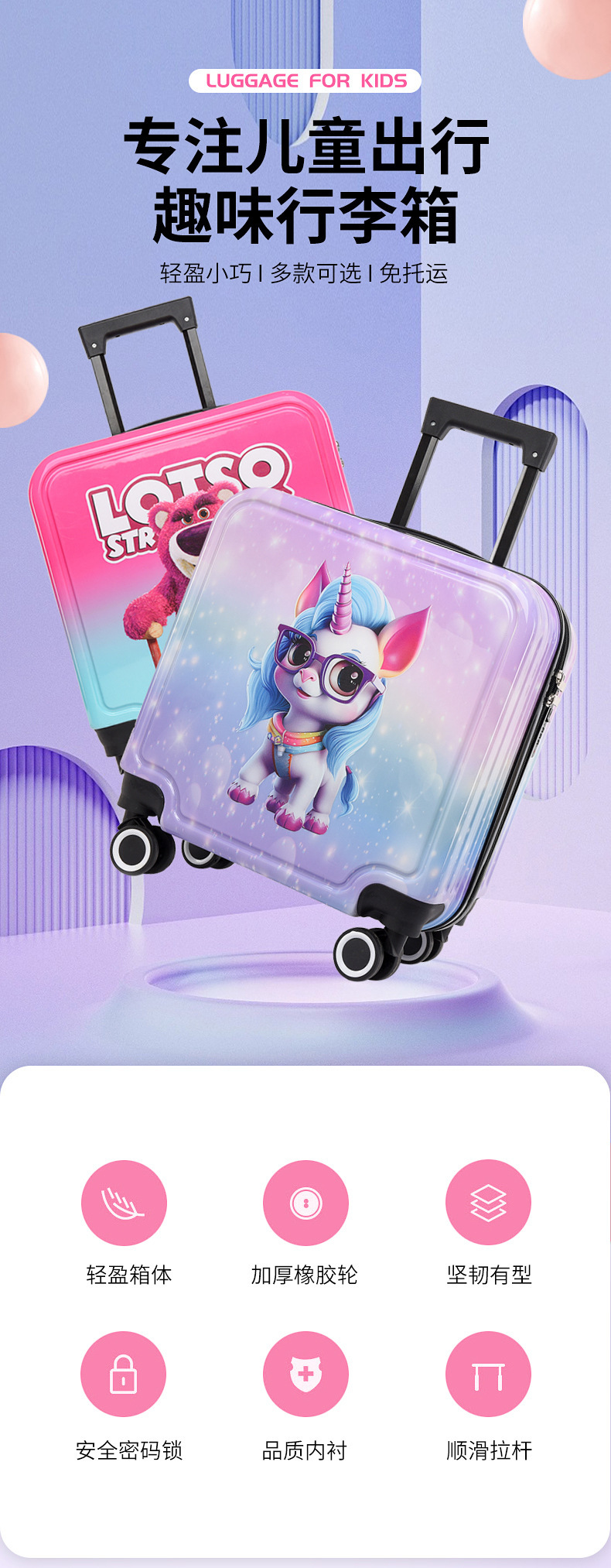 사용자 정의 20inch 어린이 가방 암호 잠금 침묵 바퀴 대용량 트롤리 케이스 레저 여행 탑승 가방스토어 가기