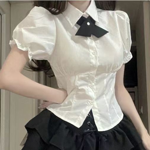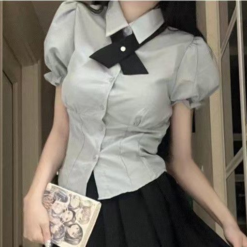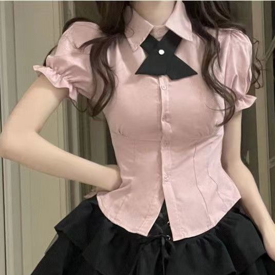 달콤한 스파이스 걸스 폴로 칼라 셔츠 여성의 여름 달콤한 핑크 반팔 셔츠 슬림 핏 슬리밍 디자인 틈새