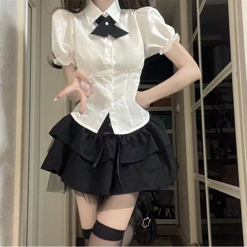 • 화이트 셔츠 나비 넥타이 블랙 투투 스커트 (3 개)