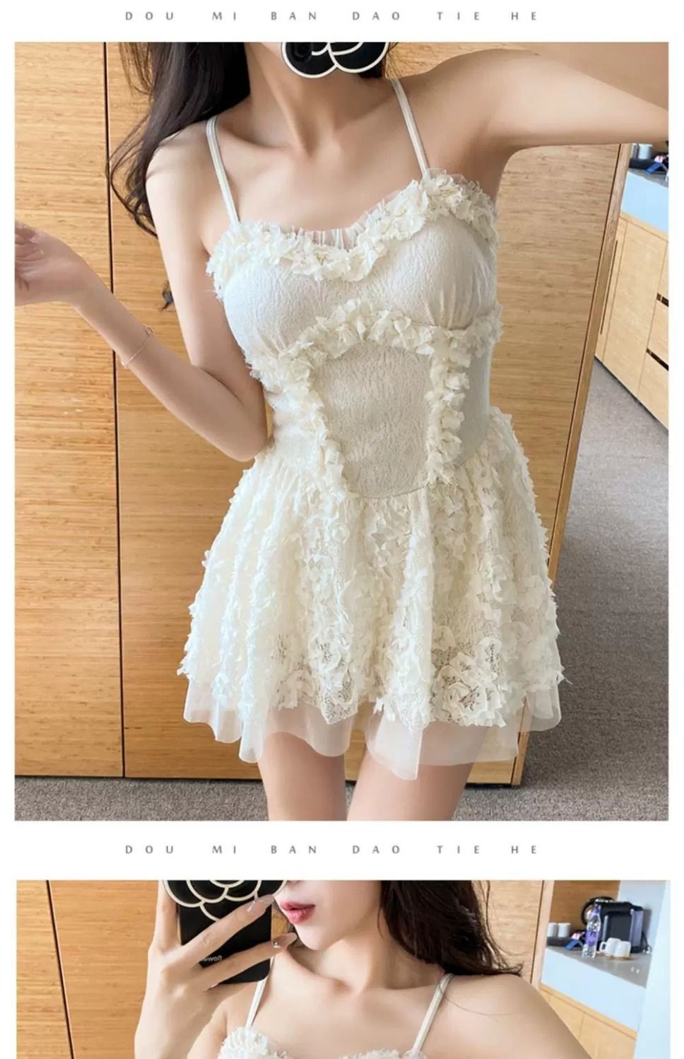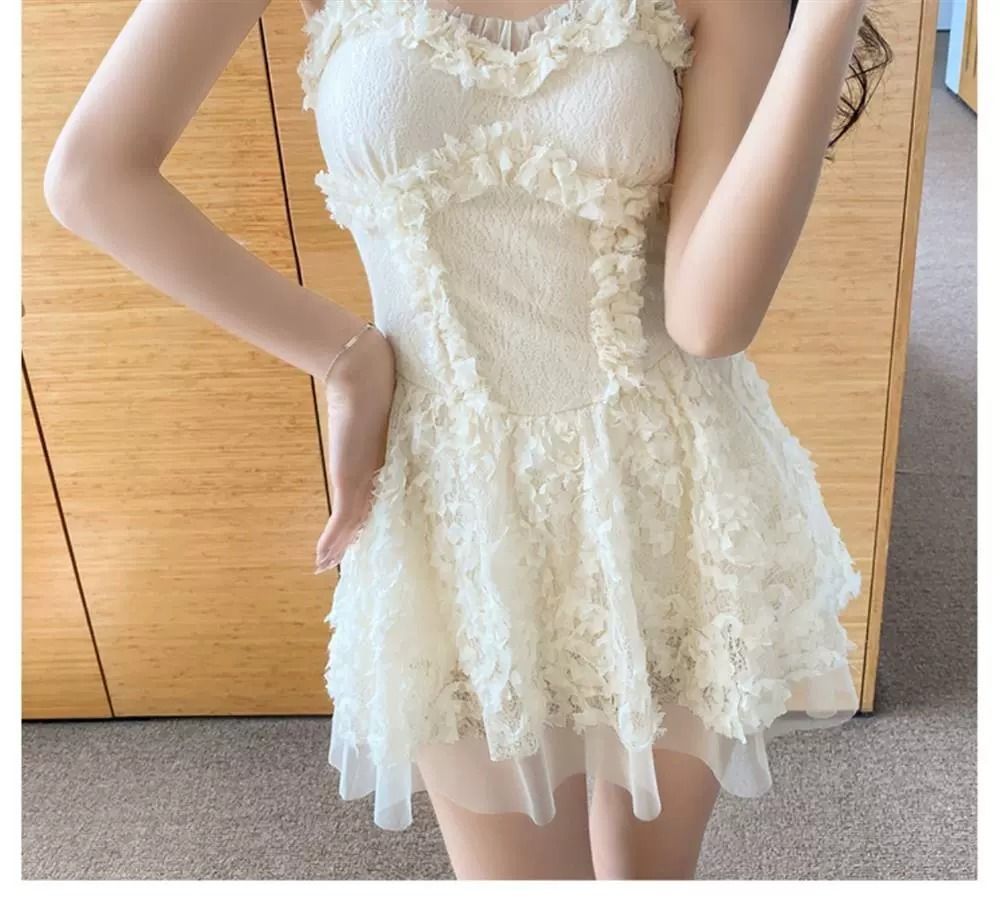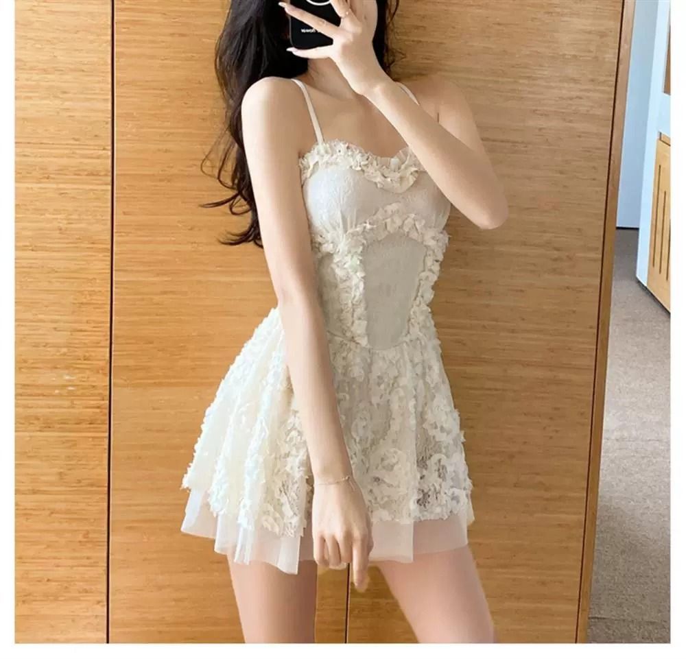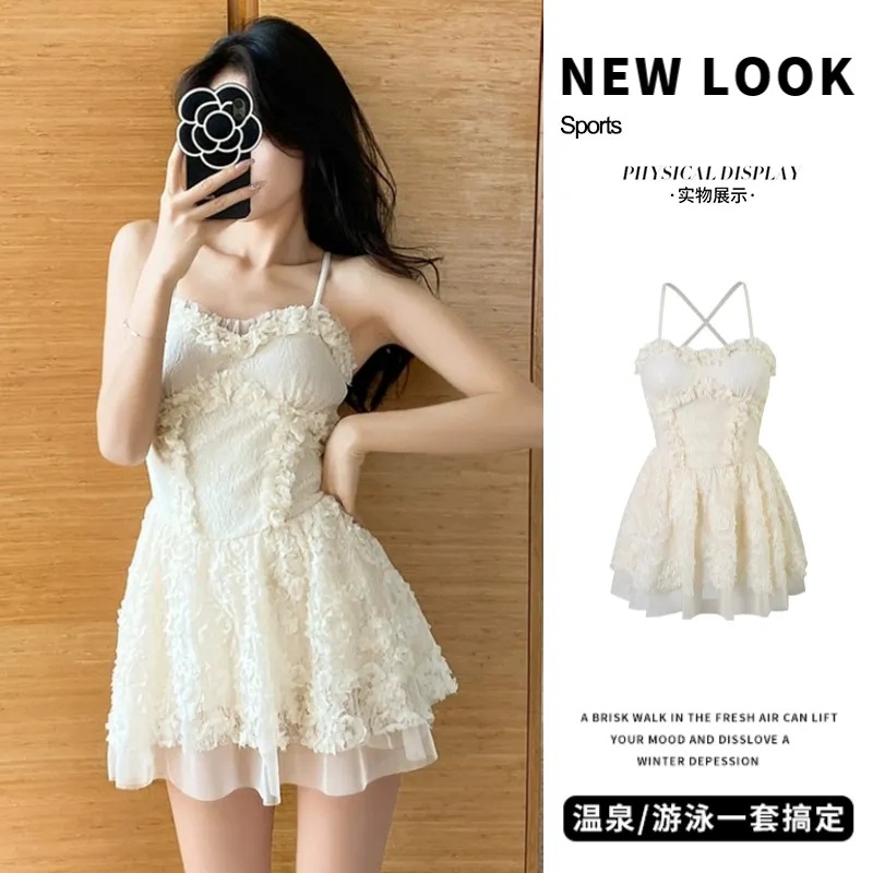 여름 원피스 수영복 새로운 섹시한 여자 슬리밍 배꼽 커버 레이스 스트랩 스커트 한국 뜨거운 봄 수영복스토어 가기