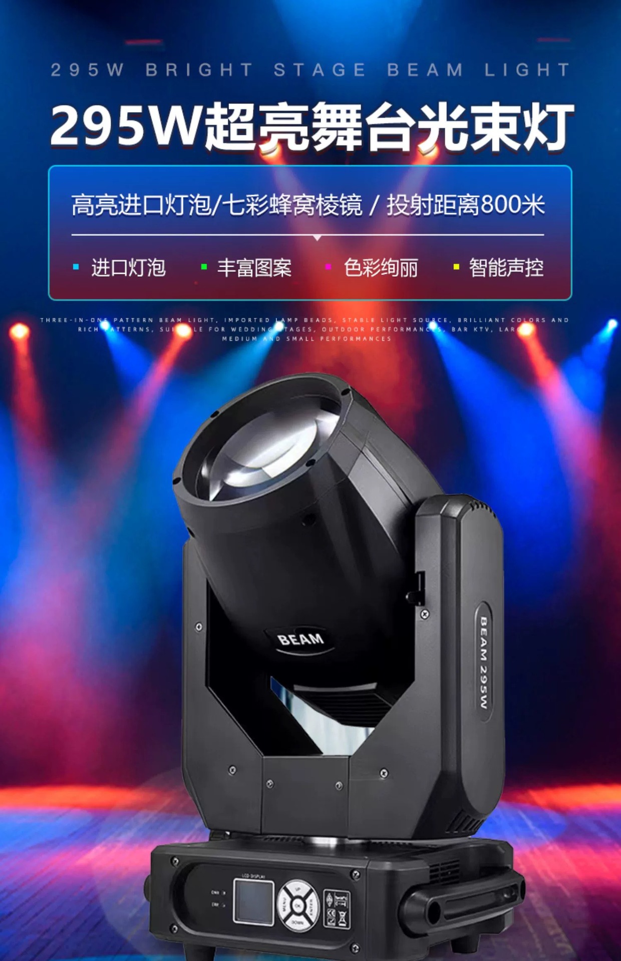 295w 흔들리는 헤드 빔 램프 컴퓨터 램프 풀 컬러 플래시 바 결혼식 연회장 공연 무대 조명