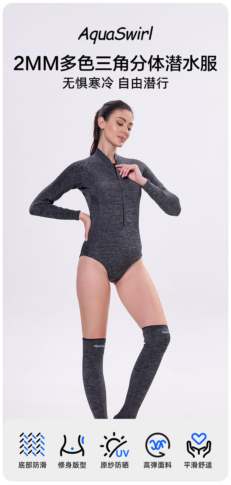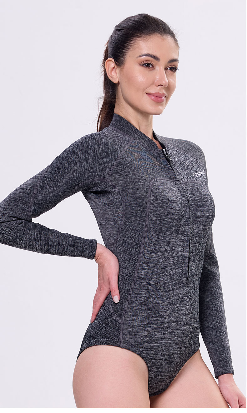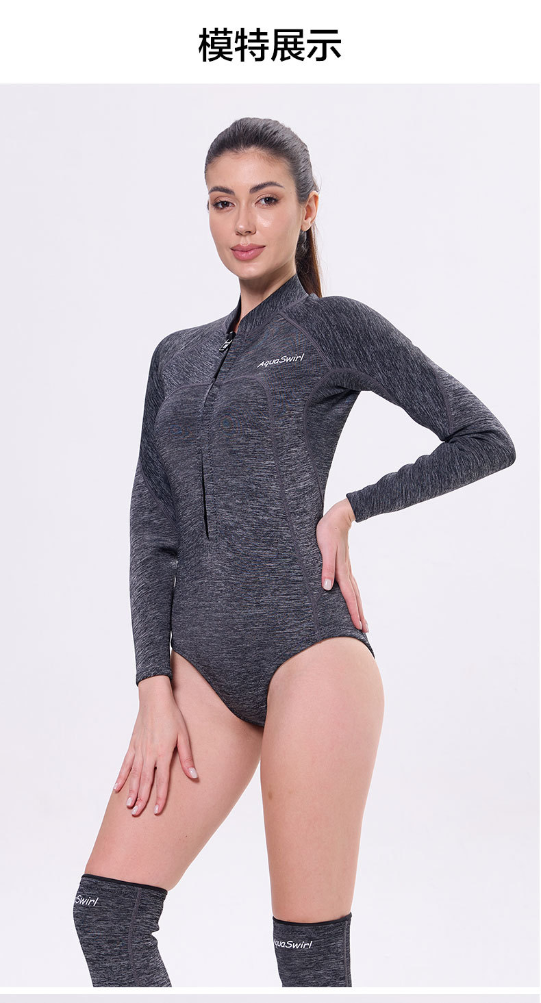 2MM 원피스 다이빙 잠수복, 긴팔 보온 잠수복, 여성용 자외선 차단 서핑 해파리 방지복, 그레이 잠수복 (재고 있음)스토어 가기