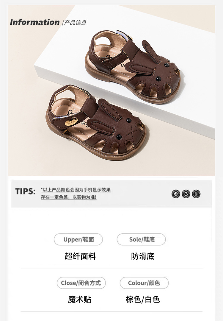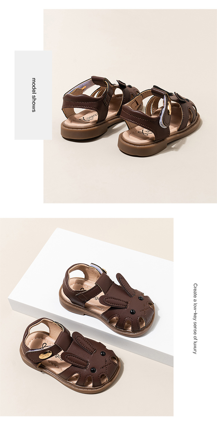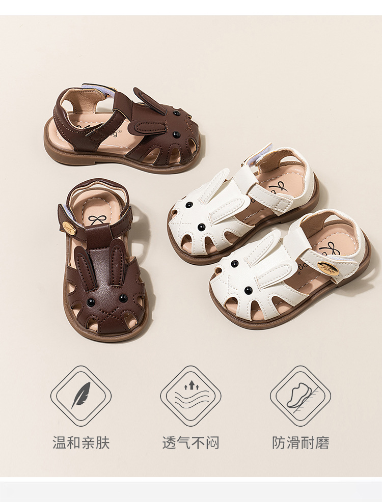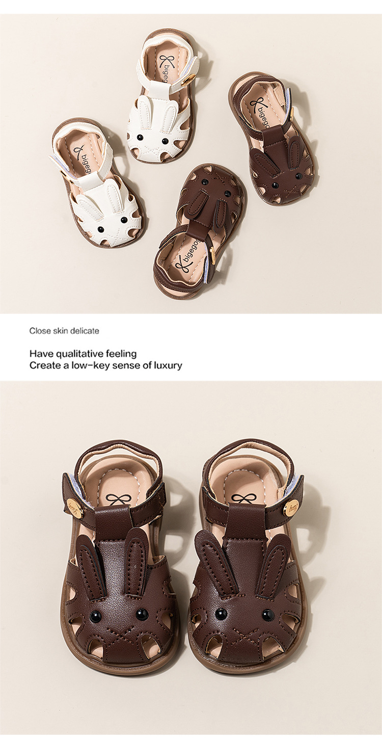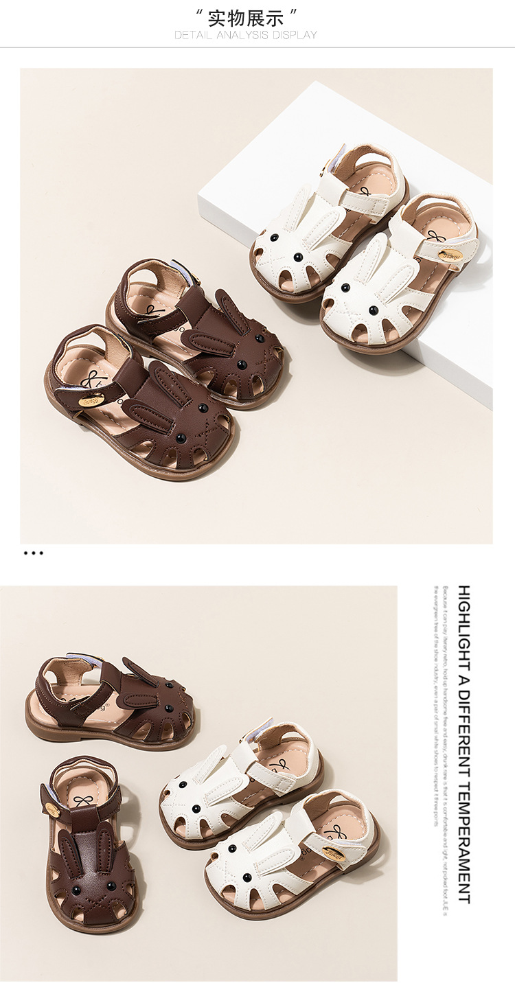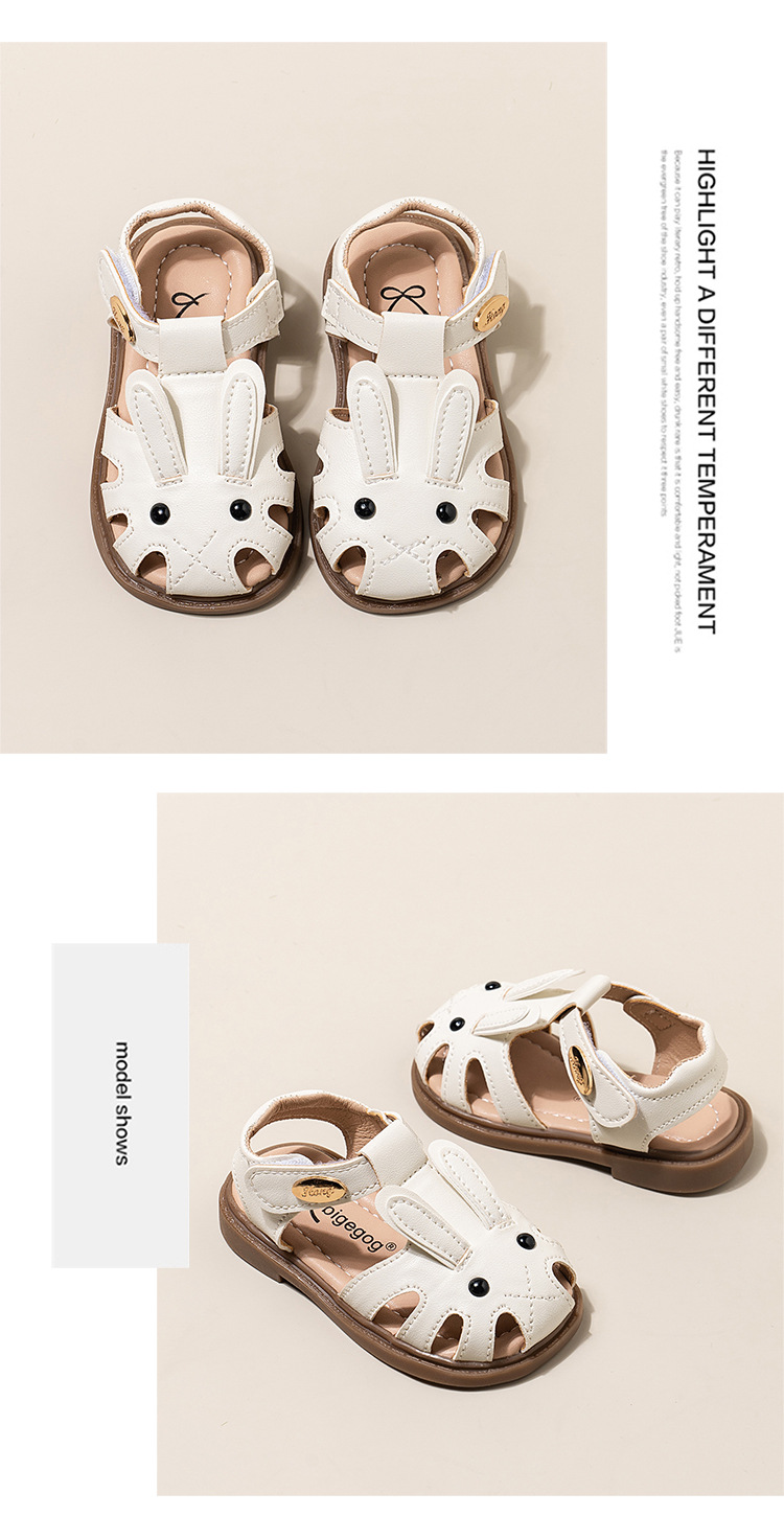 남자 아기의 귀여운 만화 토끼 유아 신발 2024 여름 새 소녀의 공주 신발 할로우 소프트 솔 샌들