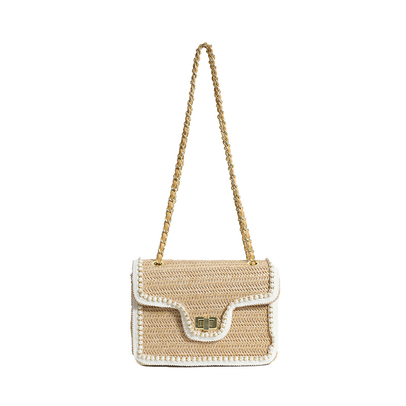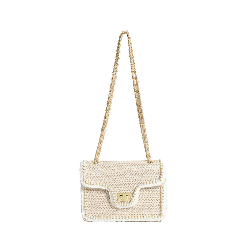 여름 신선한 밀짚 가방 2024 새로운 유행 체인 크로스 바디 가방 해변 휴일 짠 작은 광장 가방스토어 가기