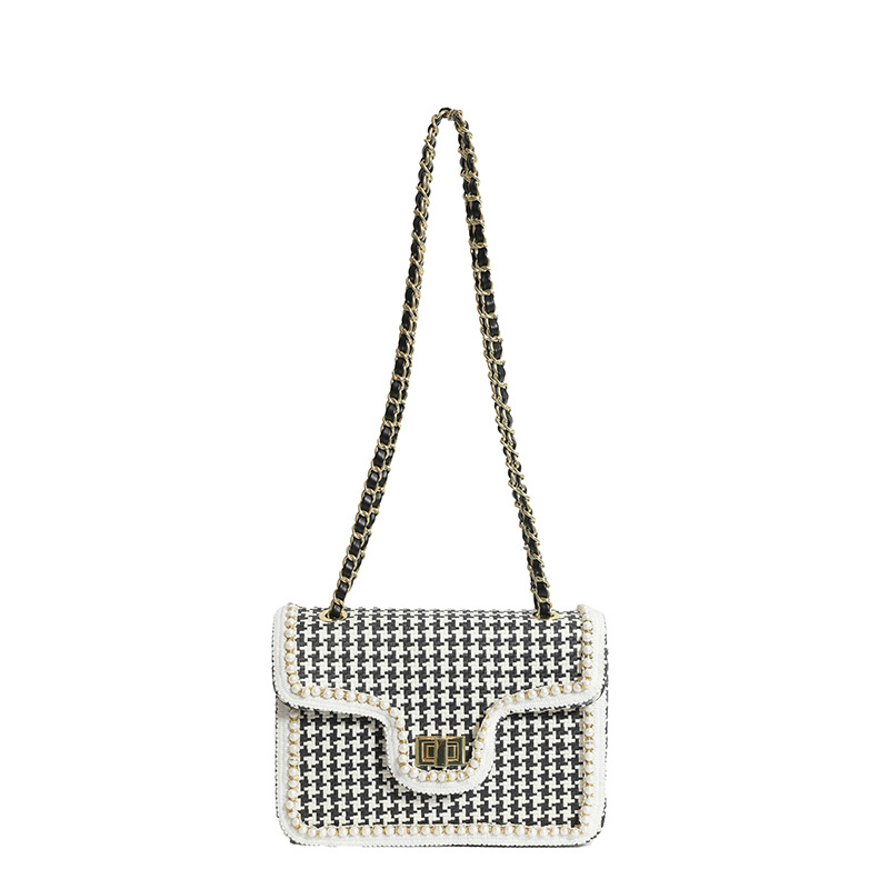 여름 신선한 밀짚 가방 2024 새로운 유행 체인 크로스 바디 가방 해변 휴일 짠 작은 광장 가방