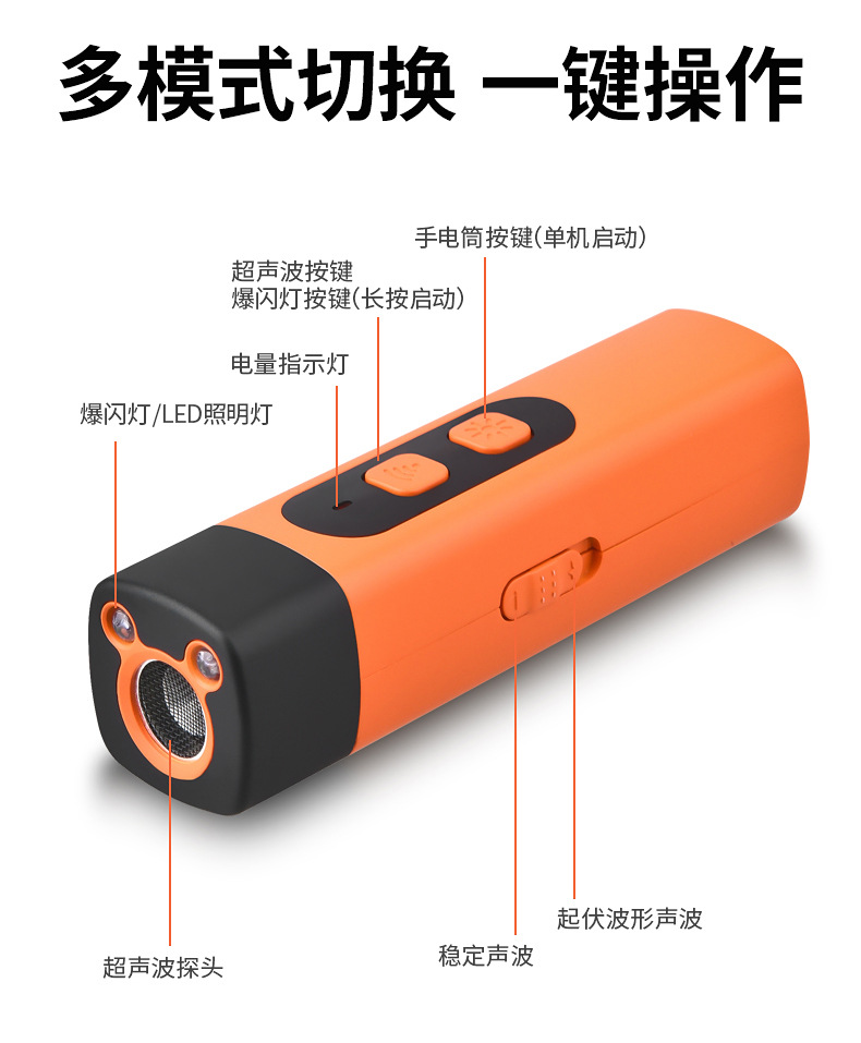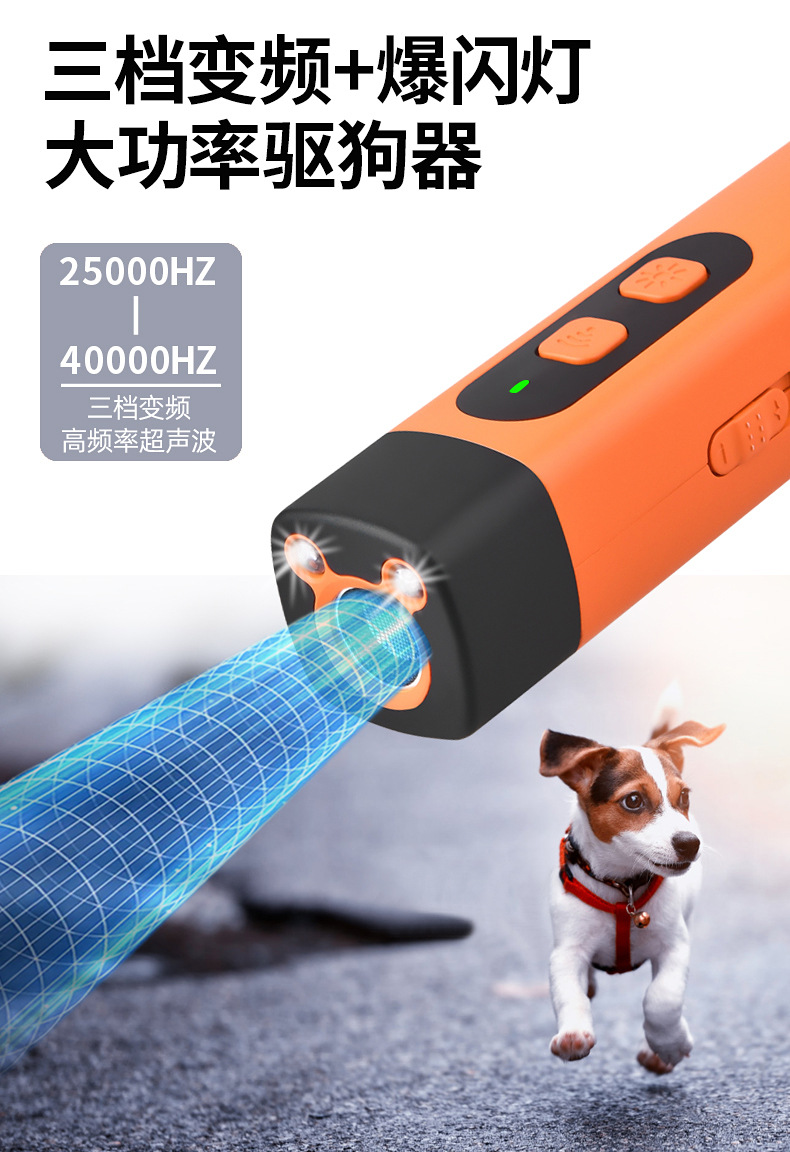 源头工厂直接出货,诚招各地代理商,如有需要请联系客服V,本产品采用超声波声音驱赶,对宠物无实体伤害。用于日常宠物乱叫,或者撕咬的训狗器。外观大方,操作简易和携带方便。三核大功率超声波 高频率超声波高频的声波 刺激恶犬听觉使犬感到害怕