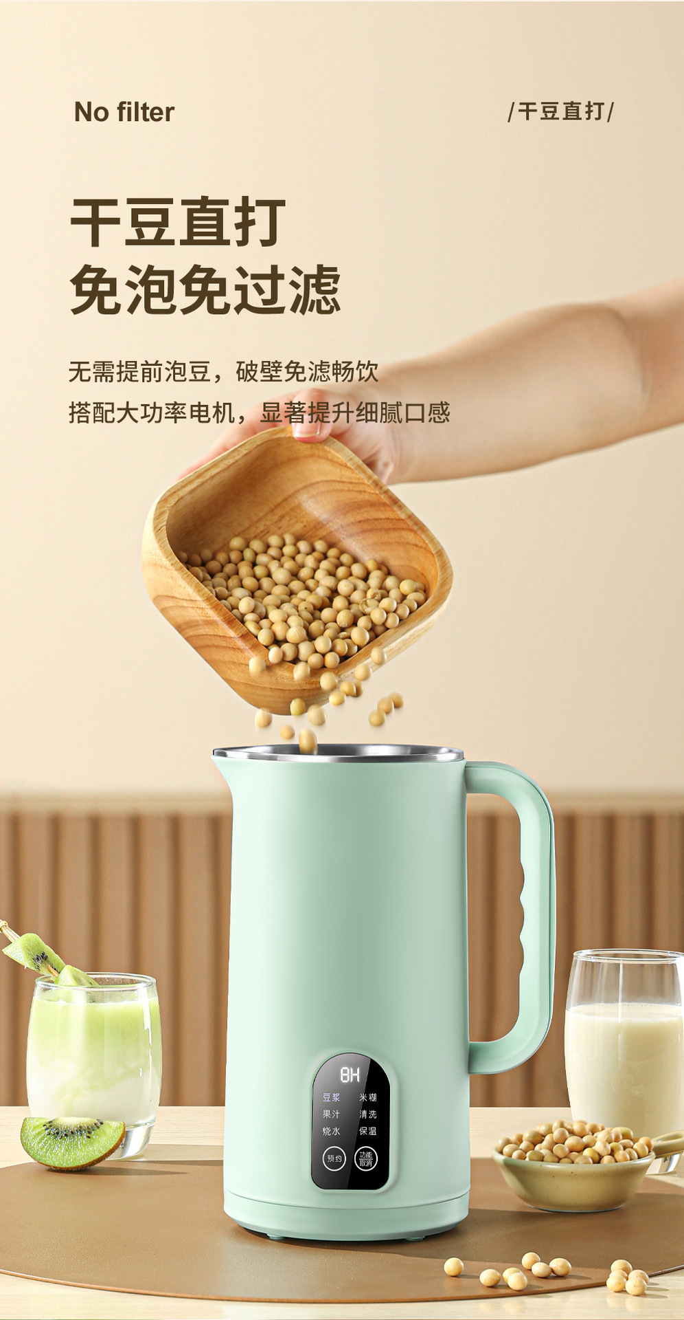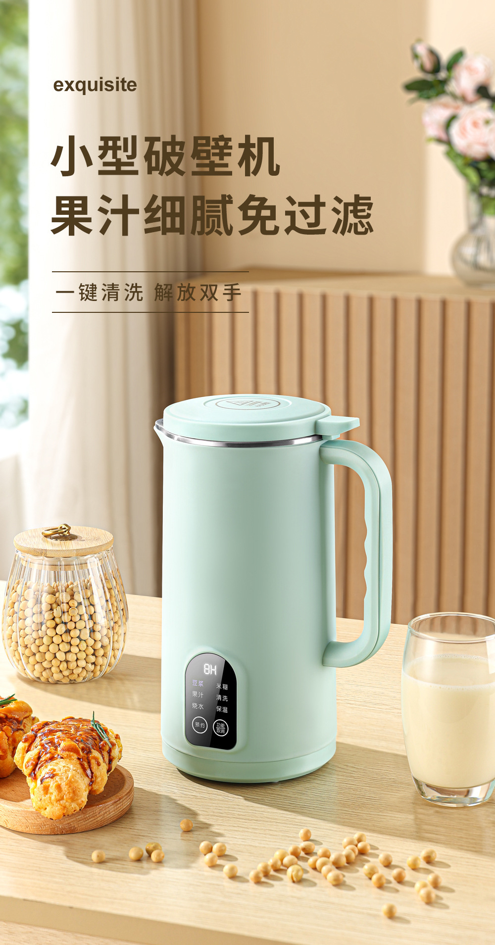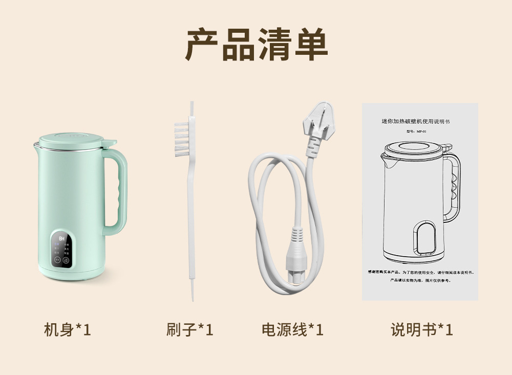 가정용 벽 깨는 기계 주스 필터가없는 완전 자동 난방 소형 미니 두유 기계 다기능 요리 기계