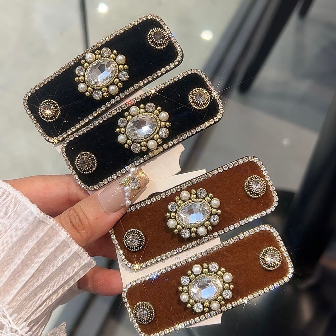 패션 우아한 새로운 플래시 다이아몬드 샤넬 스타일 헤어핀 유행 빈티지 라인 스톤 BB 클립 사이드 헤어핀 올 매치 헤어 액세서리