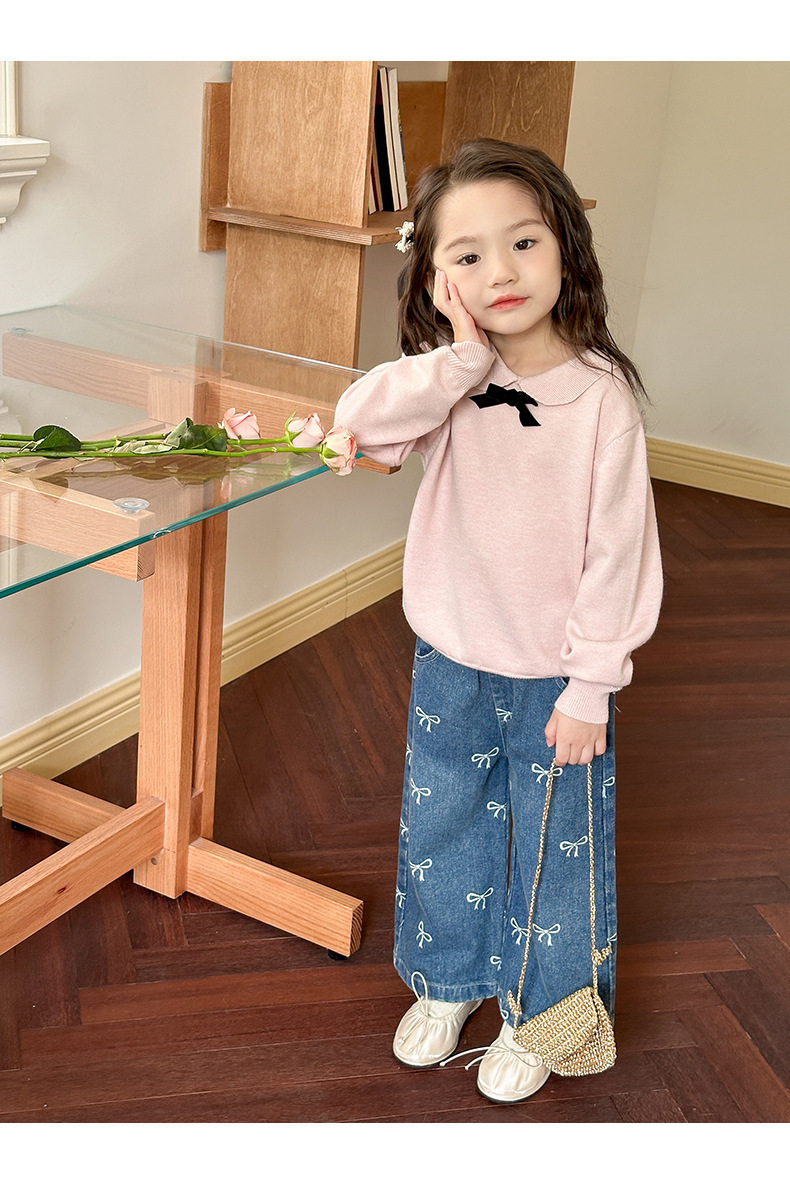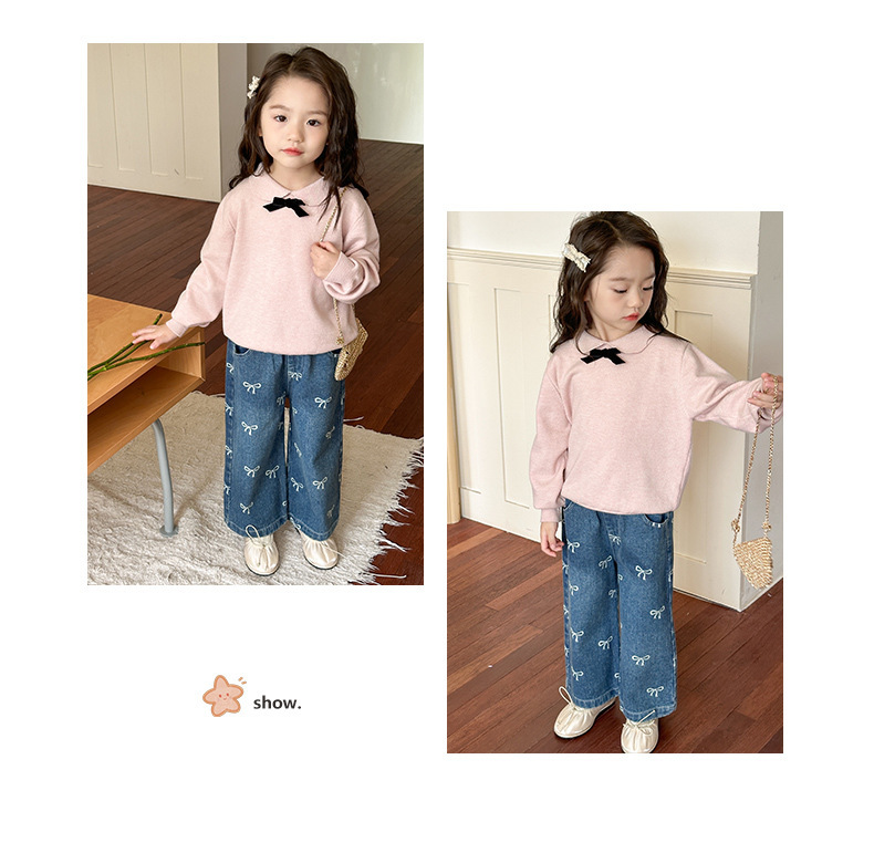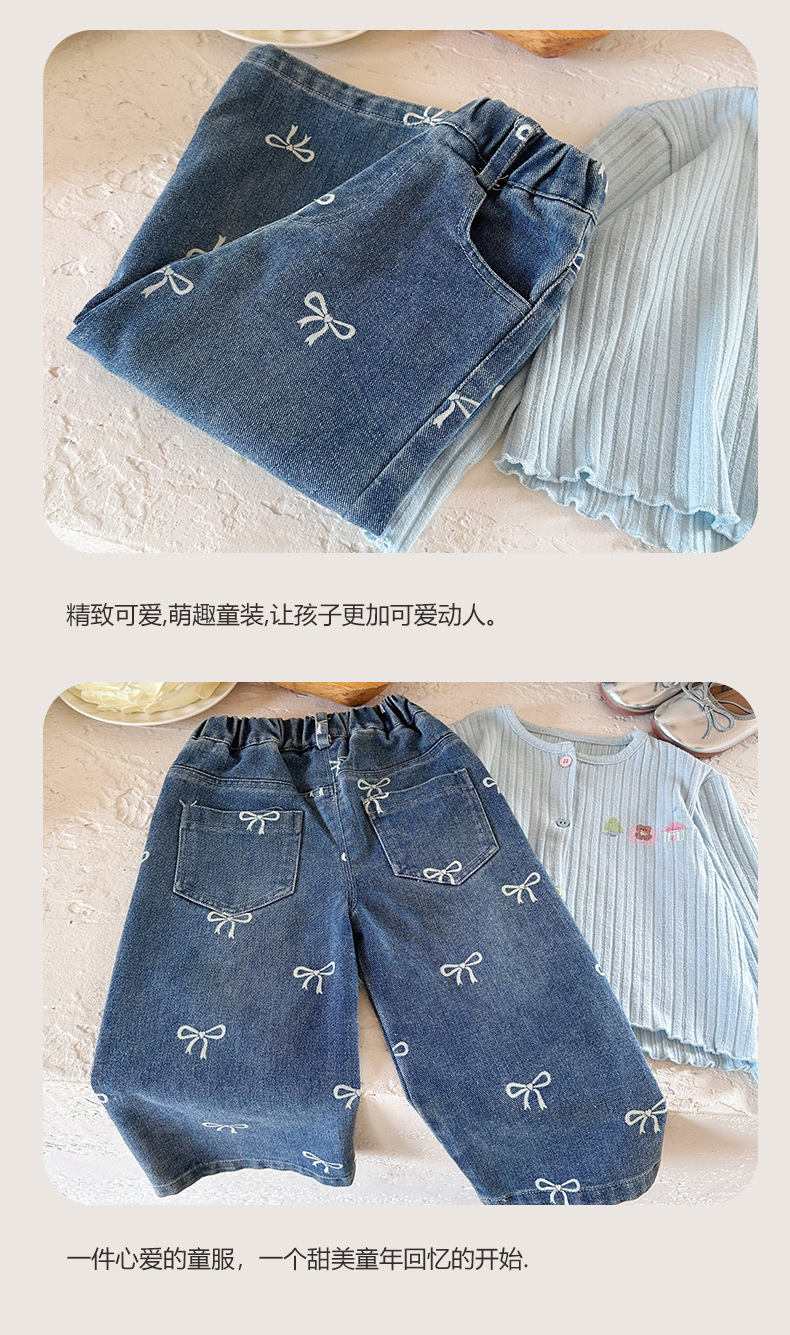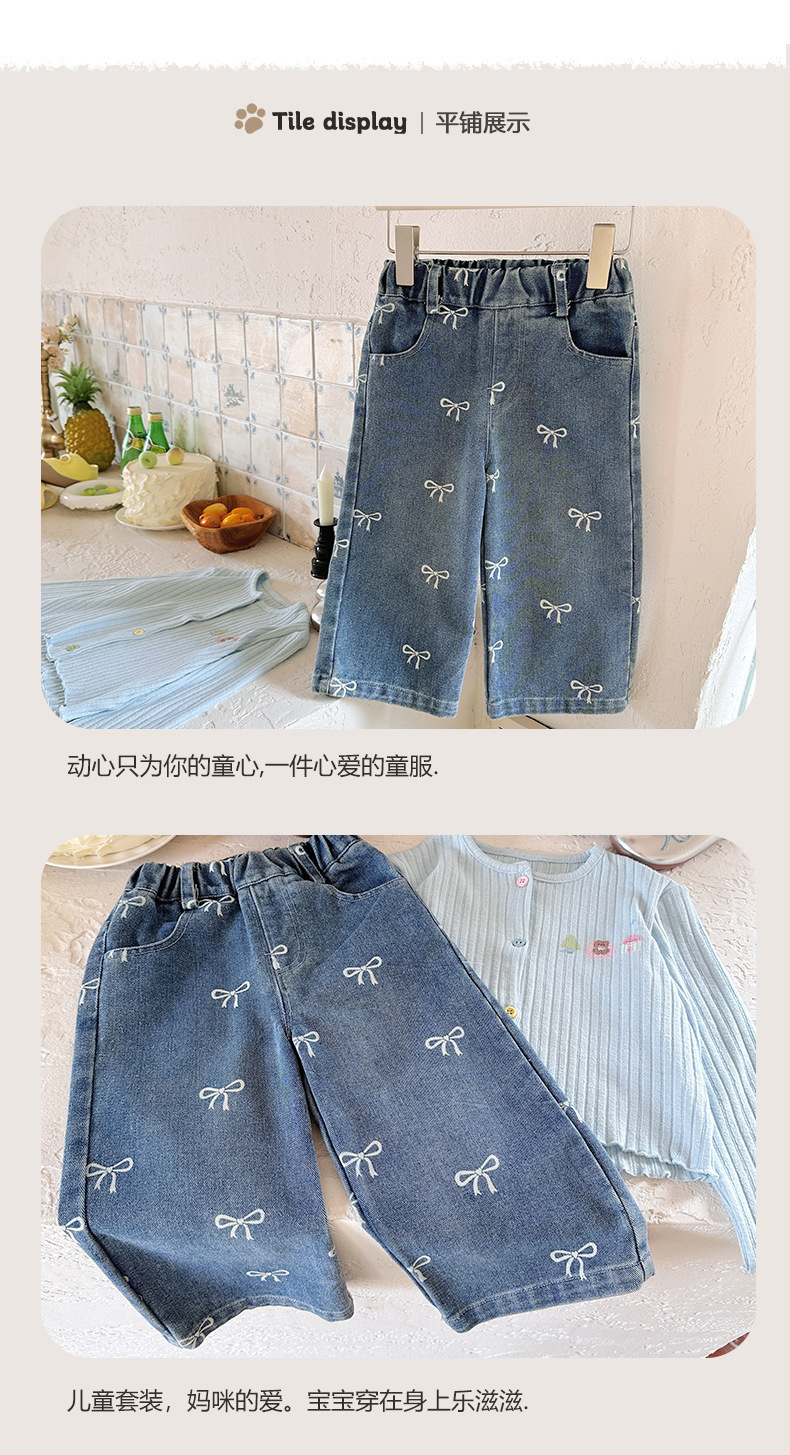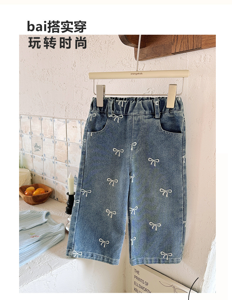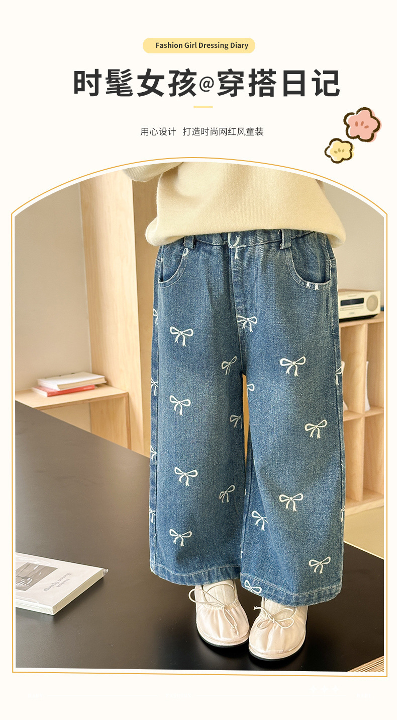 2025 가을 의류 소녀 활 인쇄 청바지 스트레이트 한국 스타일 서양식 중소 어린이 바지 캐주얼 바지